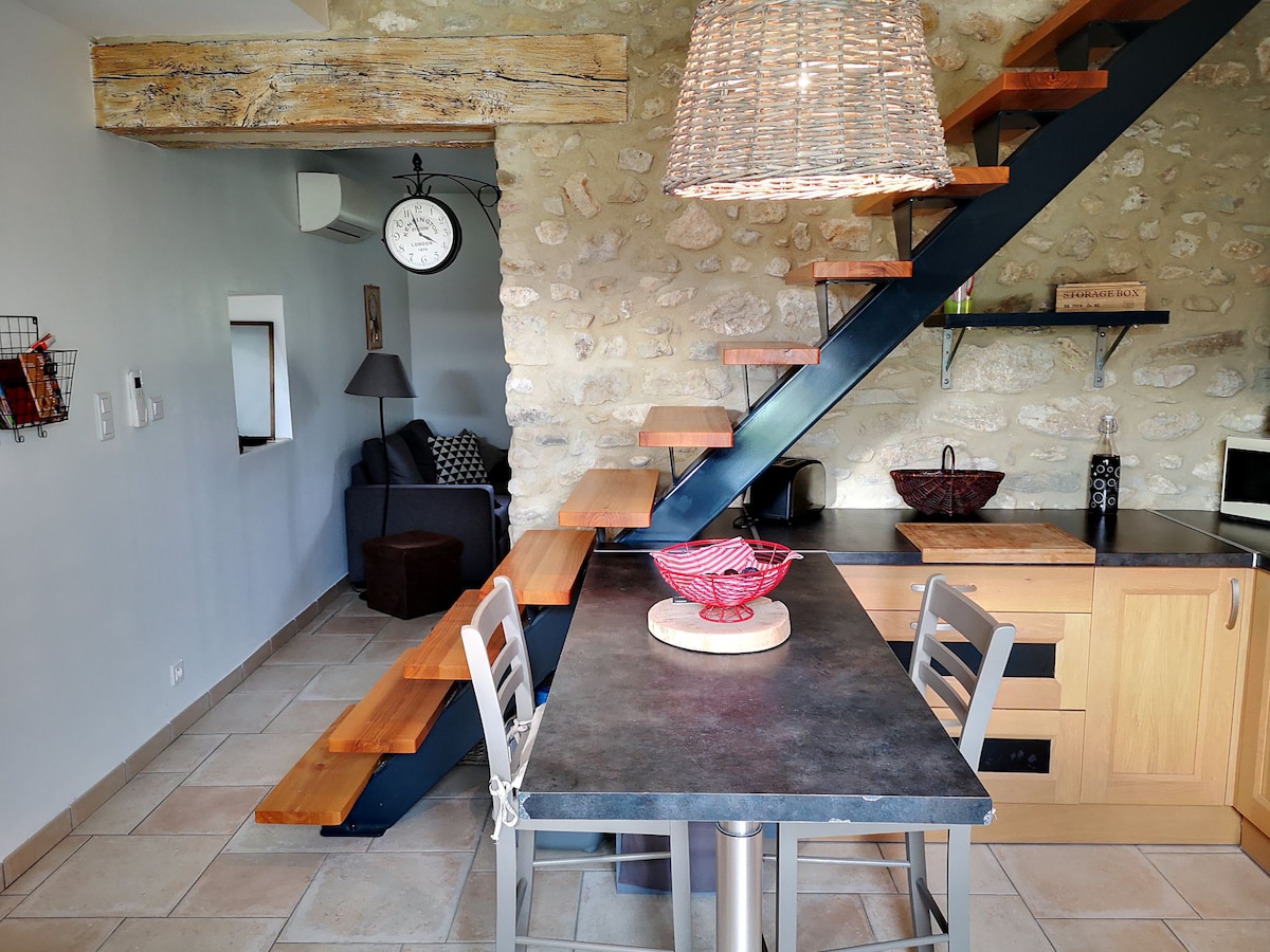 Bekvämt boende på 60 m2 i en typisk stengård från 1700-talet omgiven av vingårdar. Oberoende tillgång, terrass och parkering. I kommunen Saint-Montan (byn av karaktär). Boende: 1 sovrum: säng i 160, kontor och klädkammare. Vardagsrummet: bäddsoffa, TV och wifi utrustat kök (ugn, diskmaskin, nespresso, induktion...) Mycket stort badrum med tvättmaskin, bad, bad, dusch, 2 handfat. Babyutrustning (barnstol, bb säng) och barnböcker.