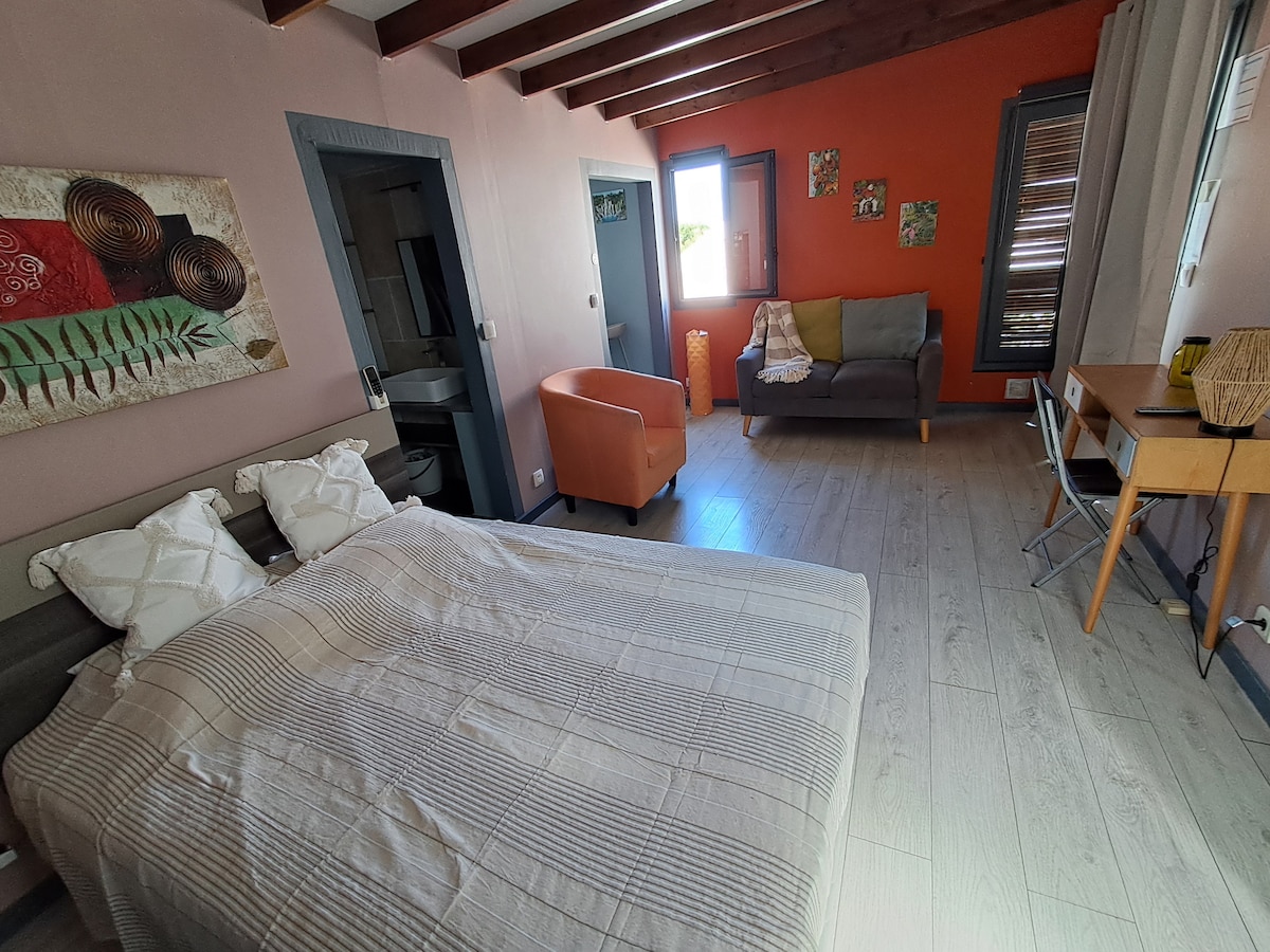 En vistelse på Reflet de l'Étang är den sällsynta kombinationen av en bevarad naturlig miljö och närheten till stränderna och aktiviteterna i Saint-Paul. Premium sovrum, modulärt sovrum med skrivbord, gemytligt vardagsrum och upplyst terrass: perfekt för par, familjer och distansarbetande resenärer. Privat parkering finns tillgänglig, tillgänglig via en säker grind. Perfekt för 4 personer. Upp till 6 personer endast på begäran. Långtidsvistelser på begäran.