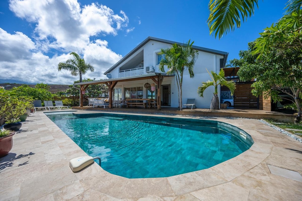 Villa med havsutsikt och alla bekvämligheter i Saint-Gilles-les-Bains. • Villa med en yta på 135 m2 . anlagd trädgård • Stor veranda med havsutsikt • Privat pool 12 X 3 utrustad med larm och uppvärmd • Fullt utrustad (TV-kanal +, Wifi, porslin, tvättmaskin, ...) • 5 minuter från stranden Boucan Canot och stadens centrum Saint-Gilles-Les-Bains samtidigt som det är lugnt . Säker parkering med automatisk grind för flera fordon (möjlighet att ladda elbil)