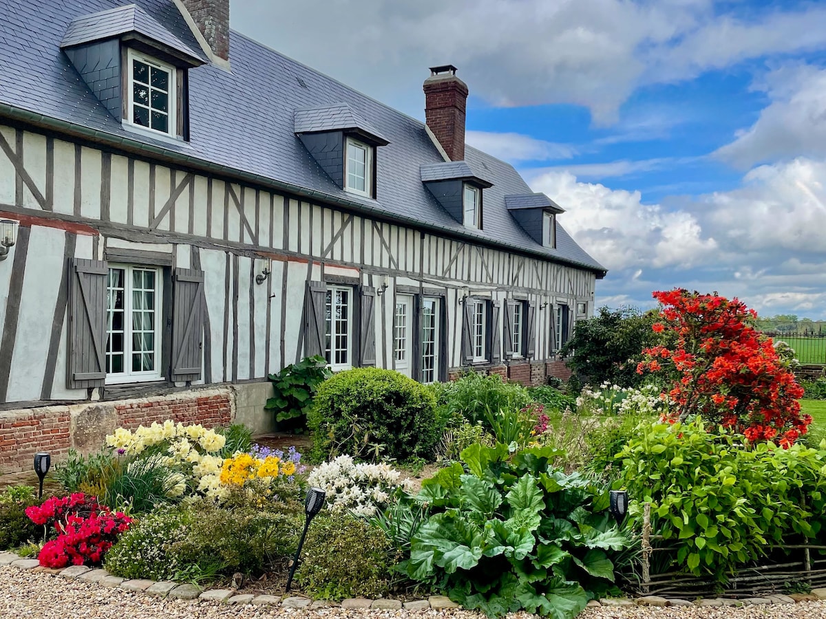 Normandisk stuga för 6 personer, fester förbjudna Layouten är modern. Bottenvåningen består av ett öppet kök med utsikt över rummet och vardagsrummet utrustat med en gigantisk skärm. - 1 badrum med 1 stor dusch och 1 separat toalett. Övervåningen: ett sovrum med badrum och toalett. - Ett landningsrum som har utsikt över ett anslutande sovrum med det tredje sovrummet. Fastigheten är inhägnad. En privat inomhuspool med uppvärmning är tillgänglig från april till slutet av oktober.