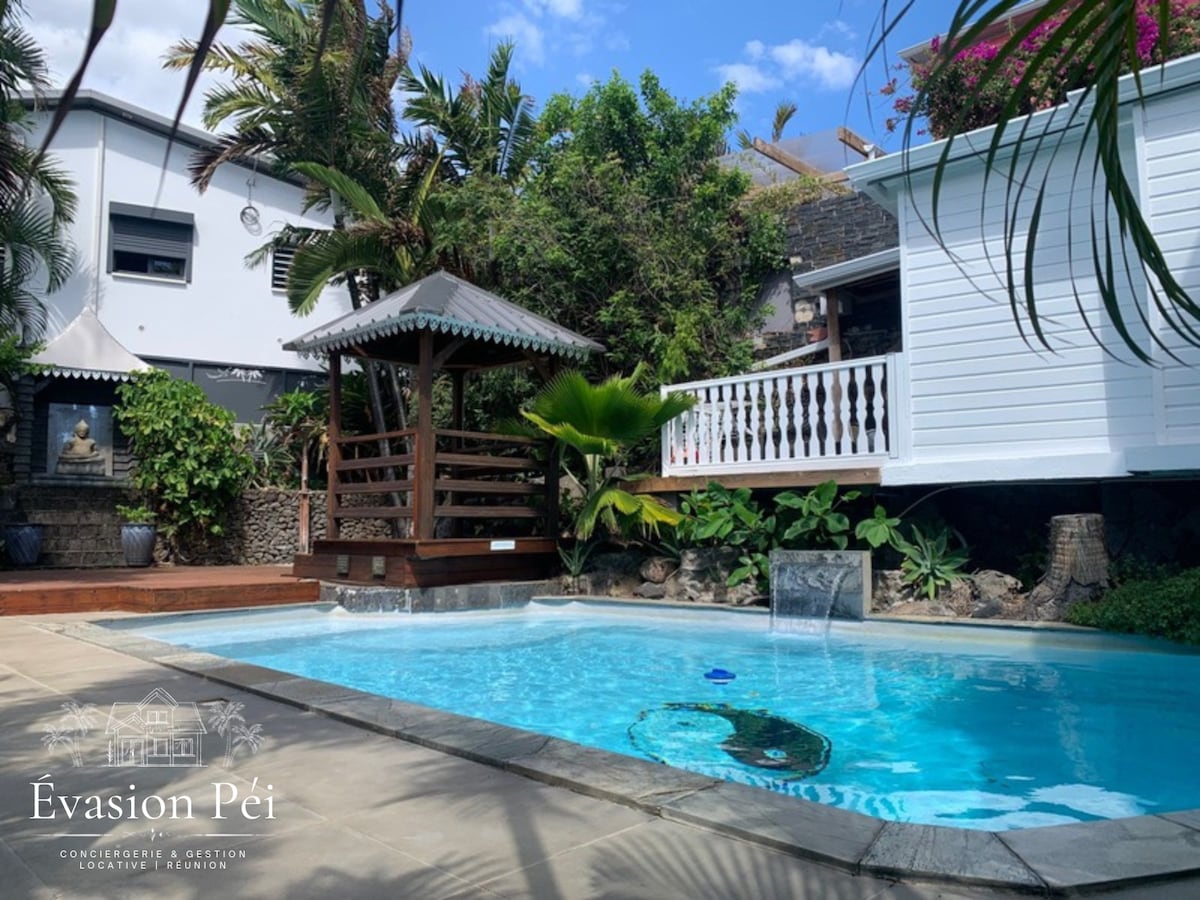 Vid grindarna till det vilda södern ligger boendet 10 minuter från Grand Anse-stranden och 20 minuter från Saint-Pierre med bil. Omgiven av naturen, kommer du att njuta av den uppvärmda och privatiserade poolen (omgivningarna under renovering), solstolar eller hängmatta som bidrar till dagdrömning. Vi är glada att välkomna dig, med vår hund Bueno, till detta lilla paradis på trädgårdsnivå i vårt hus. Havsutsikten och kvalitetssängkläder hjälper dig att få en trevlig vistelse.