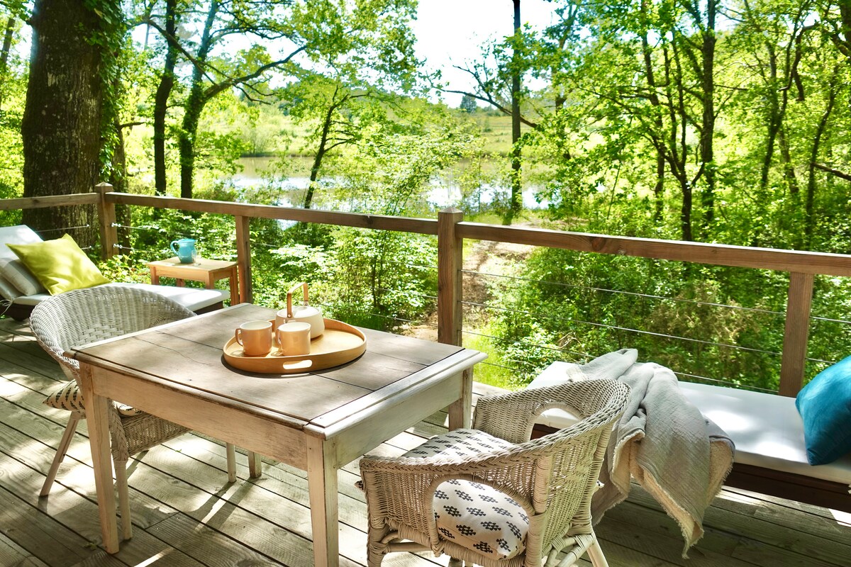 En flytande stuga, förlorad mitt i en privat damm mitt i naturen. Här, inga grannar, inget buller, bara vatten, lugn och koi-karp glider under fötterna. Utrustad med alla bekvämligheter: dubbelsäng, bäddsoffa, kök, terrass, grill, videoprojektor med Netflix/Prime, satellit-wifi. Tillgång med elektrisk motorbåt. Inget bad, inget fiske: bara nöjet att sakta ner.