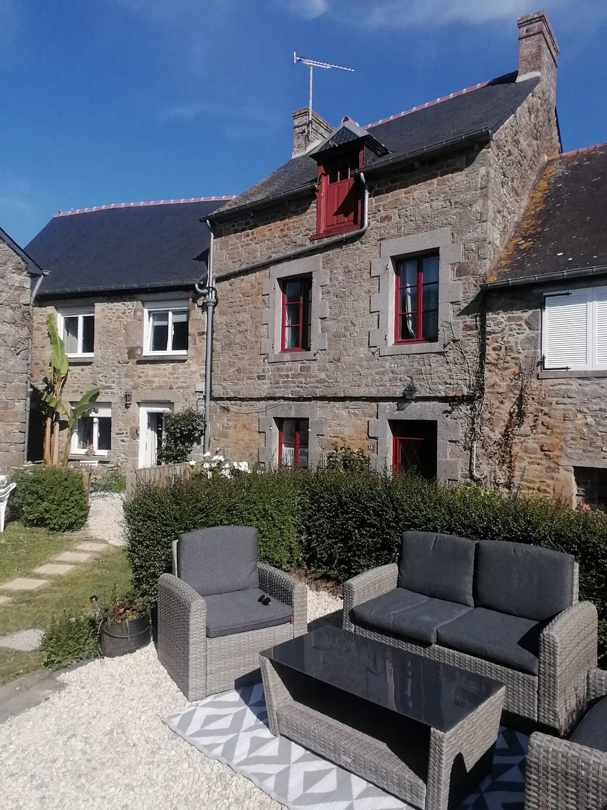 Charmigt fiskarhus 150 m från stranden i hjärtat av ett av de vackraste byarna i Frankrike idealiskt beläget nära alla måste-se platser Saint Malo, Cancale, Le Mont Saint Michel Precis intill butikerna, där allt kan nås till fots mataffär, bageri, bar, creperie, restaurang. Framför huset kan du njuta av ett mycket soligt och lugnt område för frukost. Från rummet kan du komma åt en charmig muromgiven trädgård som också är solig.