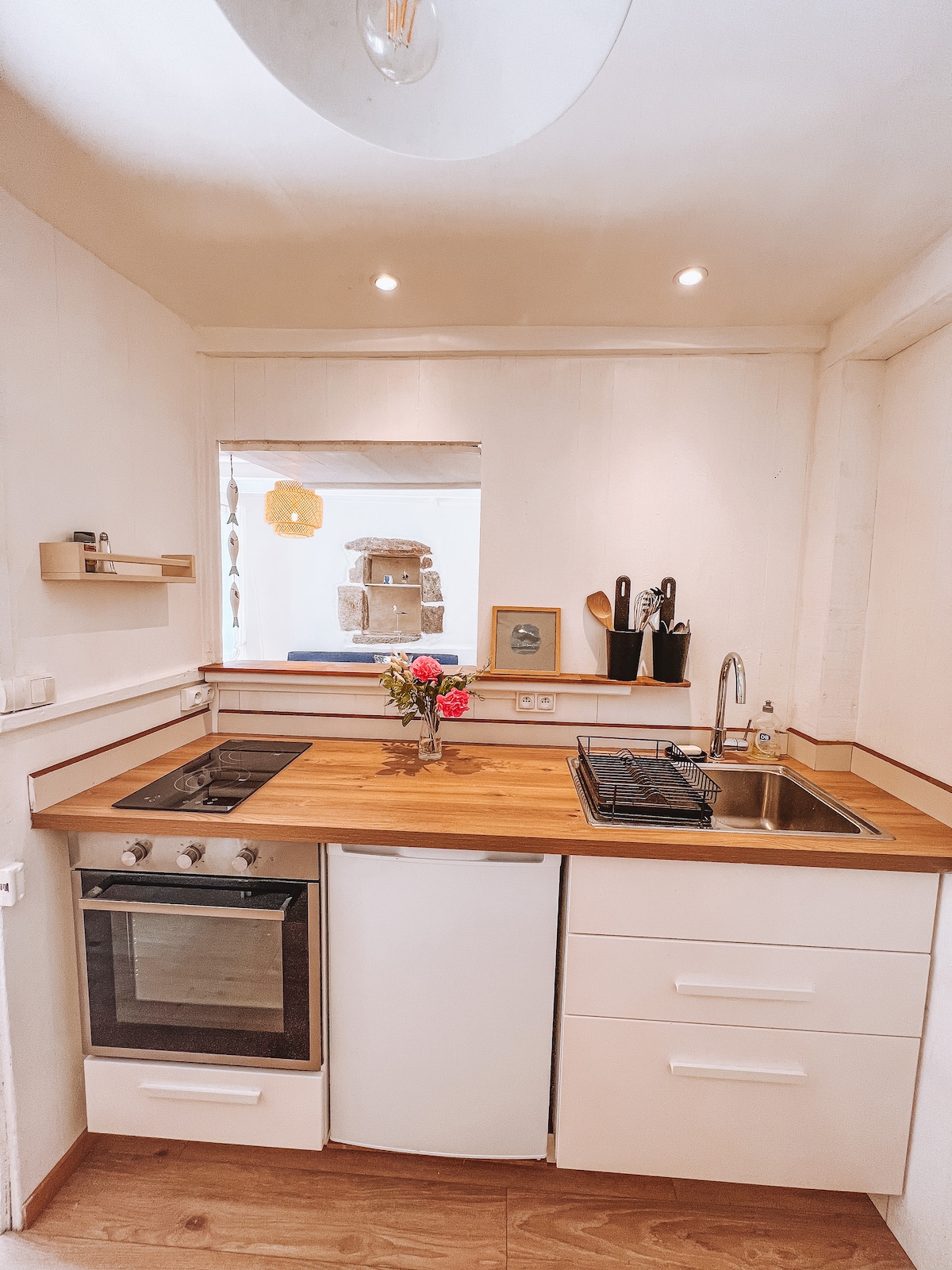 På bytorget St-Suliac, ett av de vackraste byarna i Frankrike, en kokong för din semester eller kreativa vistelser. Precis framför mataffären, några meter från bageriet, loppmarknaden, turistbyrån, kyrkan, stranden och kaféerna - restauranger. Hyper centralt! Det är konstnärens ateljé av Virginie Bregeon som klär alla föremål som huggits i färgerna i Bretagne och bjuder in stora bretonska konstnärer (Mathurin Méheut, Henri Rivière) på väggarna...