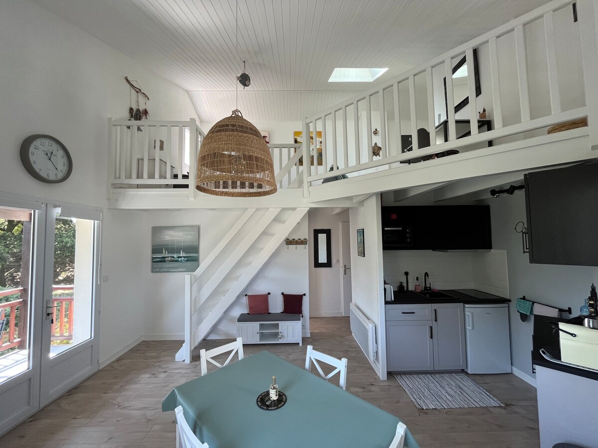 Du älskar naturen, promenader i skogen, cyklar, andas in den jodiserade luften från det närliggande havet, för din avkoppling, detta boende är lämpligt för dina önskemål. Enkel, varm, mycket tyst, ingång, vardagsrum med kokvrå, ett vardagsrum med bäddsoffa, ett badrum med toalett, på övervåningen ett mezzanin med 1 säng på 140 och 1 säng på 90, en toalett och toalett, innergård/terrass, inte förbisedd, trädgårdsmöbler, plancha, markis, stängt cykelrum, privat parkering, 1,5 km från Gatseau strand.