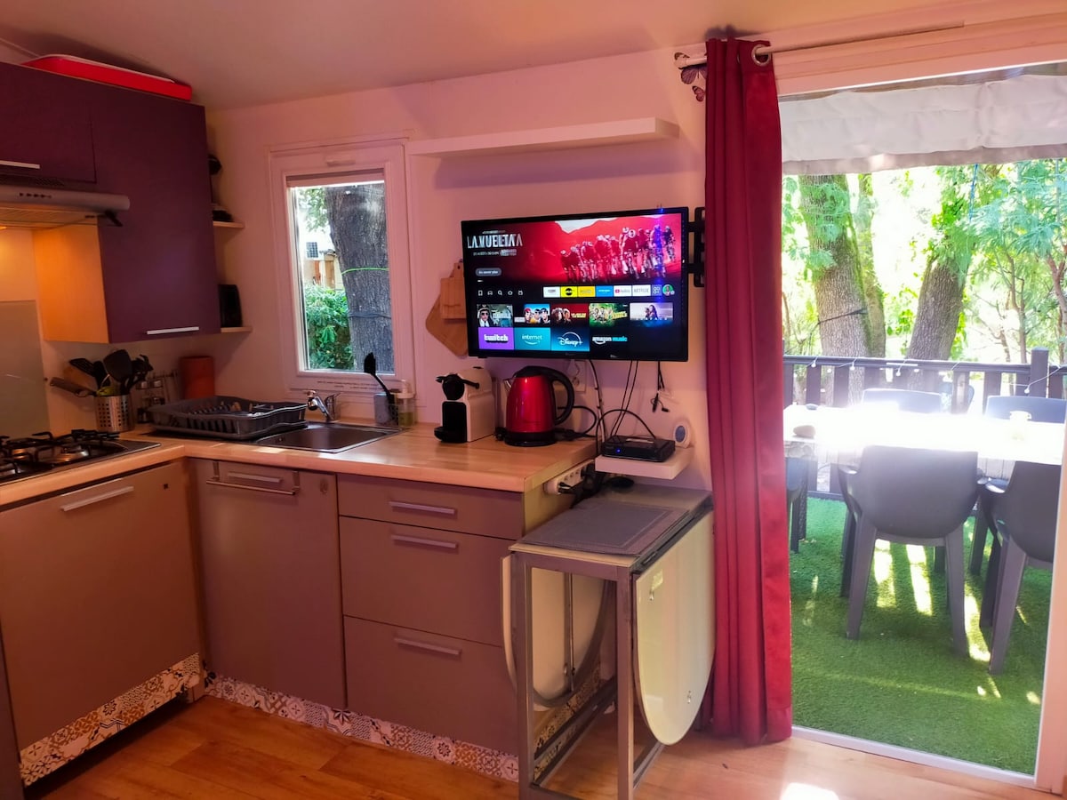 Rymlig husvagn, perfekt för 6 personer, nybyggd 2019, ligger på en 4-stjärnig campingplats i FREJUS Husvagn med alla bekvämligheter, mycket trevlig, solig, ljus, luftkonditionerad, på ett skogsområde med direkt tillgång till en stor privat terrass och trädgård Lämplig för personer som söker både avkoppling och underhållning; föreslås av campingplatsen.