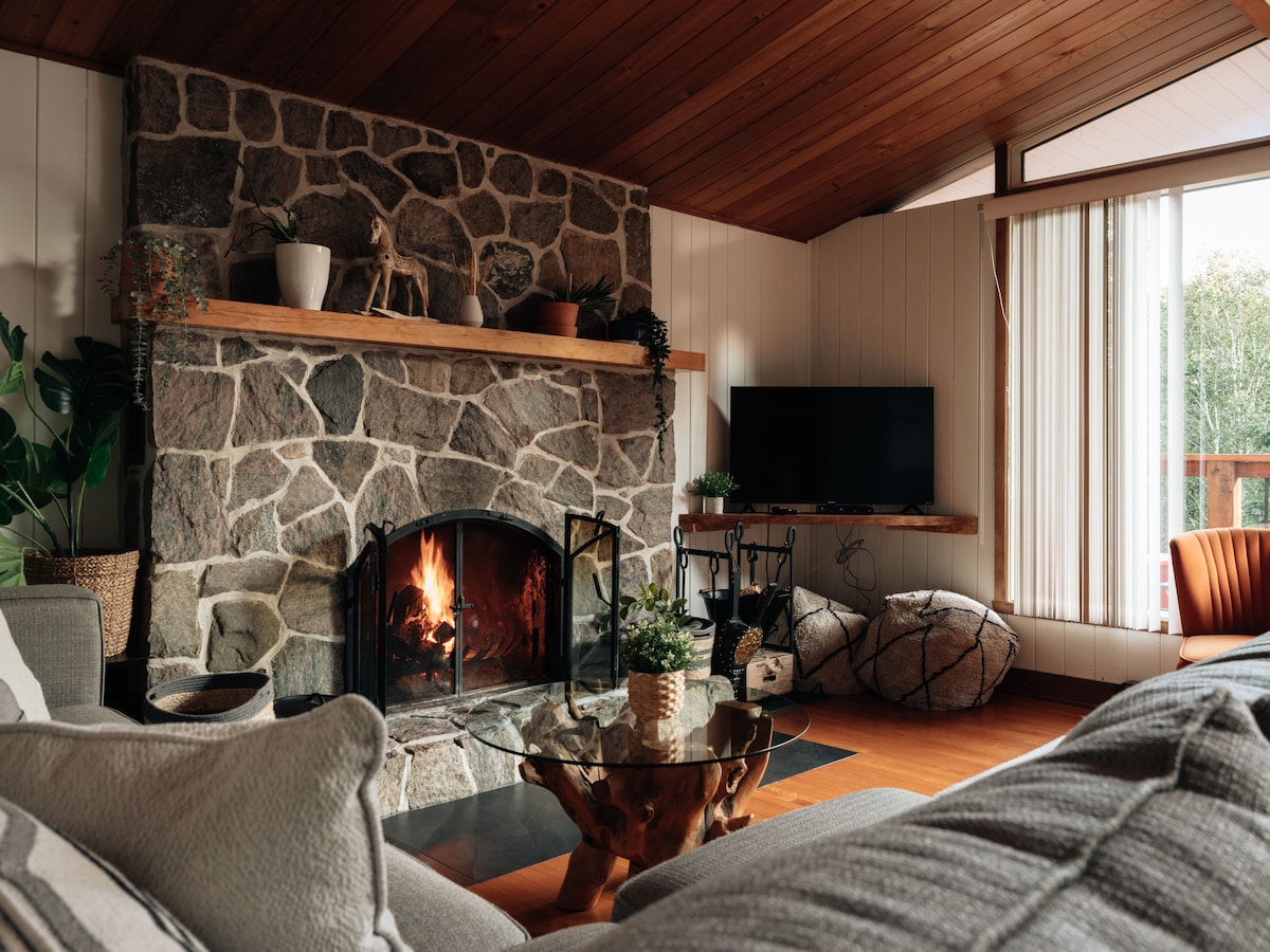 Njut av naturens lugnande effekt genom att bo i denna moderna stuga med rikliga fönster i hjärtat av skogen. Tremblant är vackert, oavsett årstid. En drömlik utomhusdestination, du kommer att vara 8 minuter från Mont Blanc och 20 minuter från Montmblant. Oavsett om det gäller vandring, längdskidåkning, snöskor eller snöskoteråkning är spår lättillgängliga i alla riktningar. För att inte tala om det berömda P'tit Train du Nord 3 minuters bilresa bort.