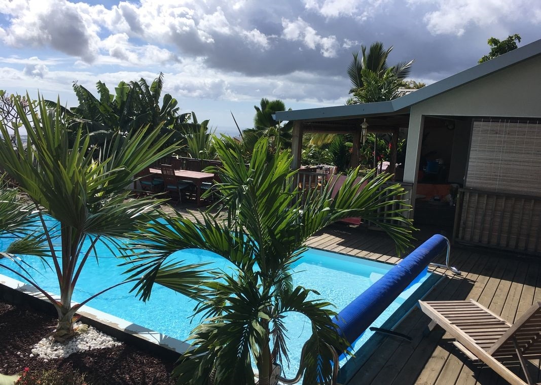 Maison entourée d'un jardin tropical, piscine sécurisée Séjour avec cuisine ouverte équipée donnant directement sur la varangue. 1 suite parentale climatisée avec salle d'eau donnant sur le jardin. 1 grande chambre d'enfant climatisée avec 1 lit simple (possibilité de poser un matelas double au sol) 1 bungalow indépendant, disposant de sa salle de bain végétalisée semi extérieure 1 salle de bain (douche à l'italienne et baignoire)+WC 1 WC indépendant