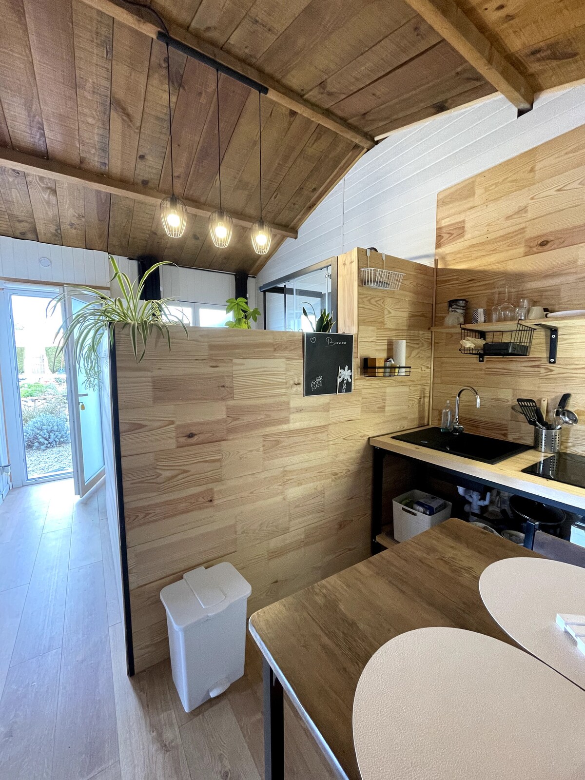 Fristående hus i lugnt läge vid skogsbrynet, nära stränderna i Mimizan (12 km), golf, sjöar och cykelvägar (La Vélodyssée passerar 2 km bort). Det kombinerar modernitet och charm hos traditionella Landaise-briketter, det är perfekt för par eller ensamresenärer. Sovrum med dubbelsäng 160x200. Kök utrustat med kylskåp, induktionshäll, kombinerad mikrovågsugn med grill, Nespresso-kaffemaskin, vattenkokare, soffa, TV, wifi. Separat dusch och toalett.