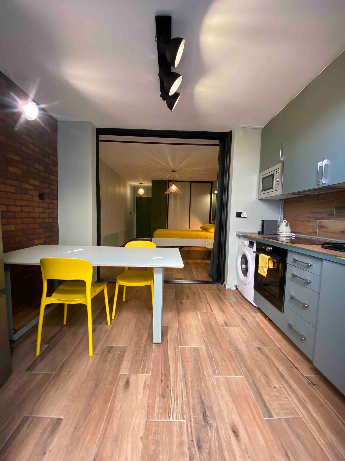 Oberoende studio på övervåningen. Direkt privat tillgång utomhus via trappa, yta 30 m2, plus terrass på 12 m2. Bäddsoffa, arbetsyta, 102 cm TV, WiFi. Fristående kök med kylskåp, elektrisk ugn, mikrovågsugn, Nespresso-kaffemaskin, elektrisk vattenkokare, bestick och allt som behövs för matlagning.