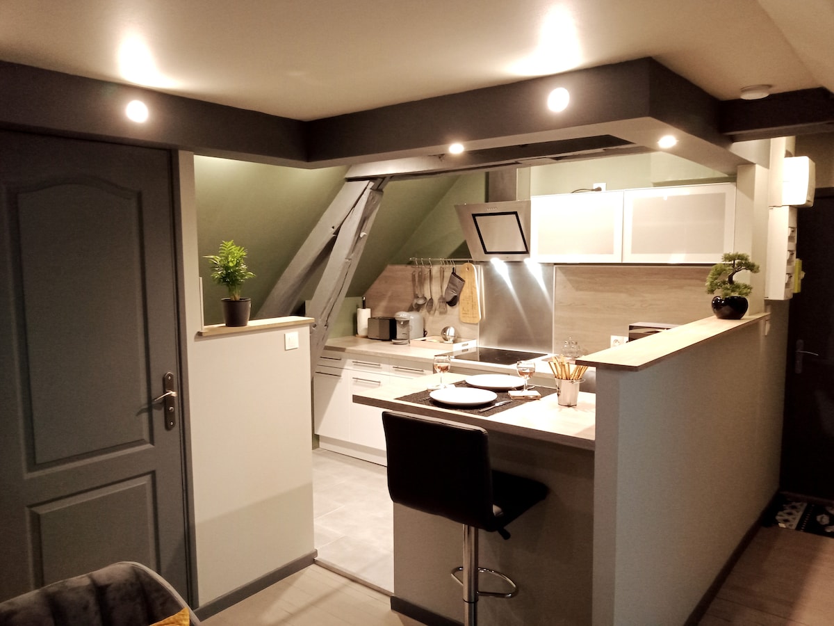 "Le Perchoir" är lite som Rooftop of Troyes, inget annat boende erbjuder en sådan hisnande utsikt över den historiska stadskärnan :) Du kommer att förföras av tjänsterna i denna smakfullt inredda och utrustade lägenhet! ☆ Panoramautsikt över stadens centrum ☆ Beläget 100 meter från tågstationen ☆ Stadscentrum 100 meter från lägenheten ☆ 4K-projektor ☆ Exklusiva ytor ☆ Simmons sängkläder 160x200 ☆ Avancerad TV och ljudsystem ☆ Affärer 1 min bort Behöver du information? Kontakta mig :)