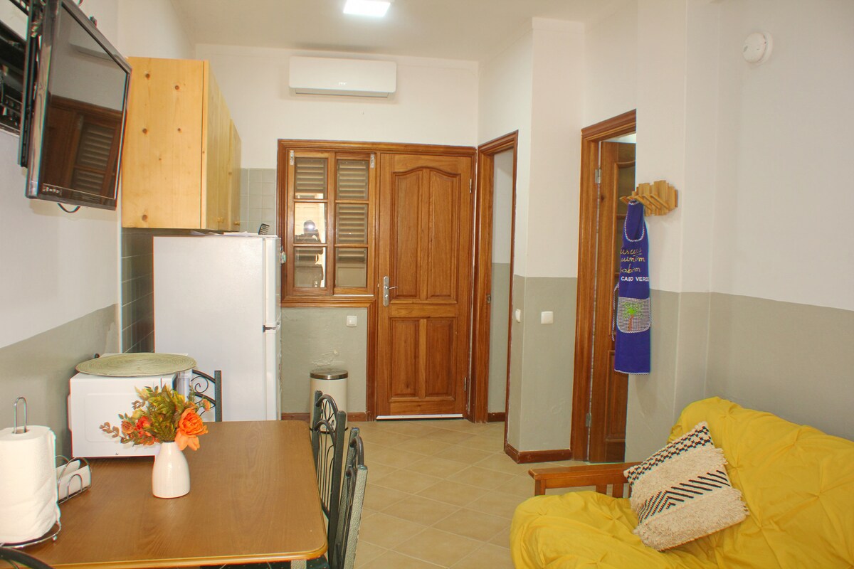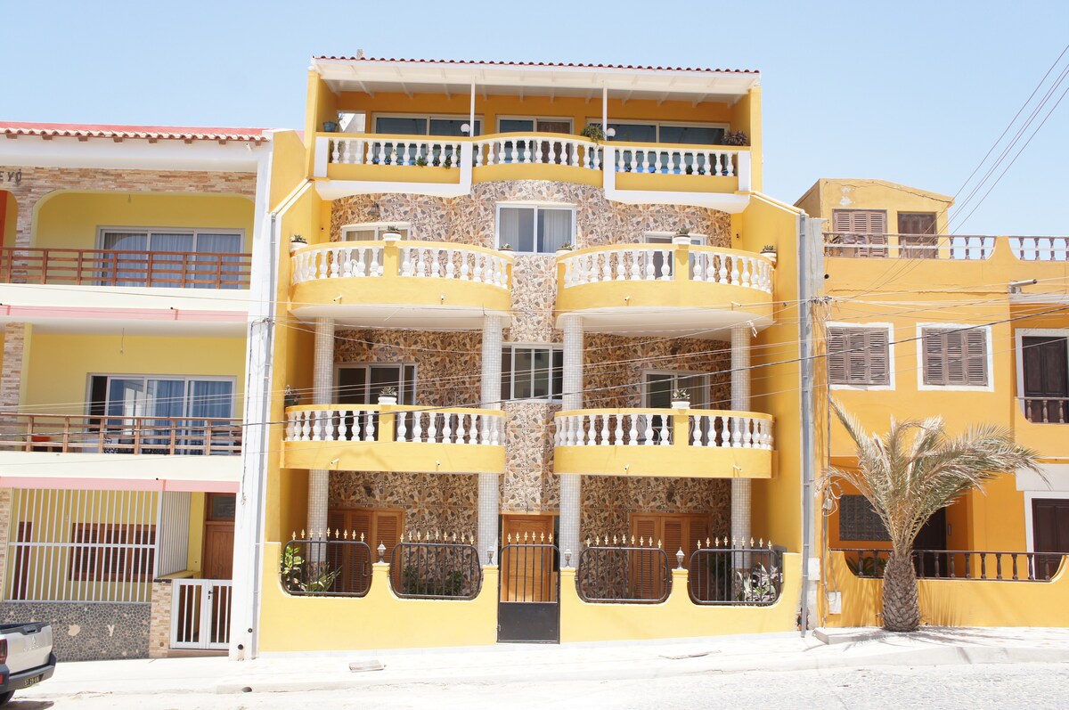 Lägenheten ligger 200 meter från centrala Sal Rei, 300 meter från stranden framför, 400 meter från Cabral-stranden och 650 meter från Estoril-stranden. Den erbjuder det perfekta läget för dem som vill utforska de vackra stränderna i Sal-Rei och ha enkel tillgång till marknader och restauranger. Lägenheten är modern, välutrustad, med stora rum och utsökt inredning med en fantastisk utsikt över ön Sal Rei, stränderna Estoril och Chaves. Svitrum med garderob och balkong med havsutsikt.