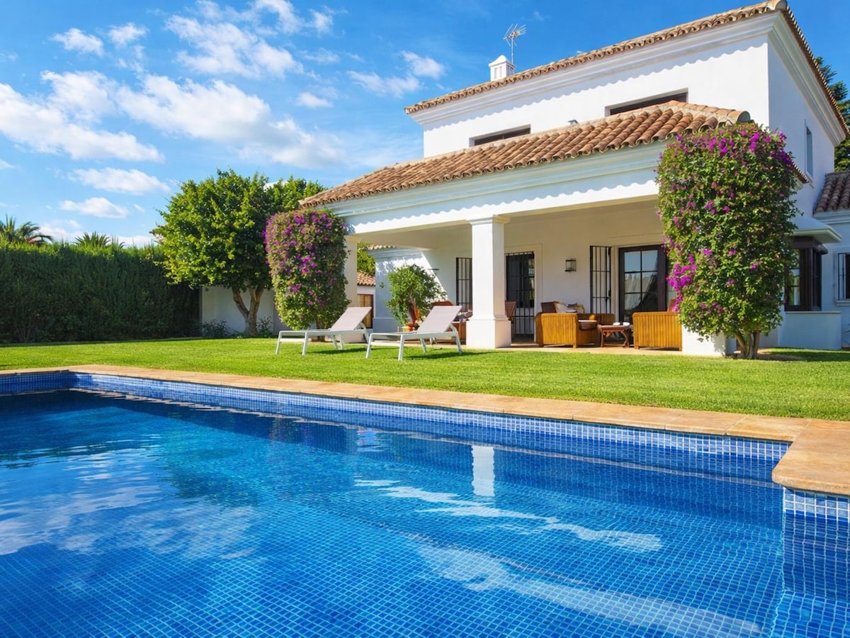 Preciosa villa en Estepona, a 300 metros de la playa Disfruta de esta villa de dos plantas con 3 dormitorios en suite y un aseo, perfecta para unas vacaciones junto al mar. Cuenta con salón y comedor, piscina privada y aire acondicionado en los dormitorios. Su ubicación a solo 300 metros de la playa permite combinar descanso, confort y la cercanía al mar. No dispone de parking Consulta las normas adicionales de la propiedad.