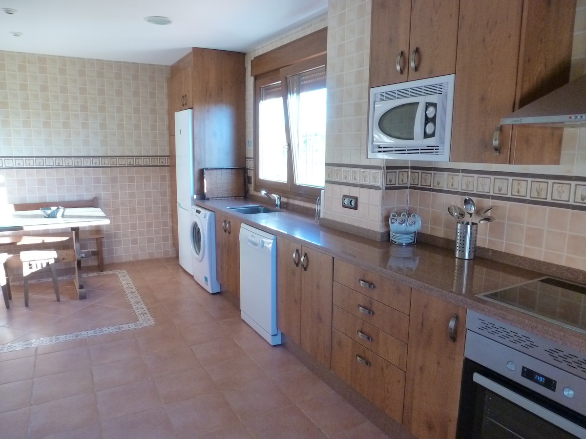 STOR ENKEL ALPSTUGA MED GRUPPTILLBEHÖR!!!! Hus med fyra sovrum, två badrum, ett av dem med två duschar och ett toalettutrymme och separat handfat. Välutrustat kök och en matsal med en öppen spis. Stor pool med basketplan, pediment och grodmatch. Här finns också en inbyggd grill, uteservering, utomhusgym med viktmaskiner, abs och spänning. Mindre än 10 minuter från stan!