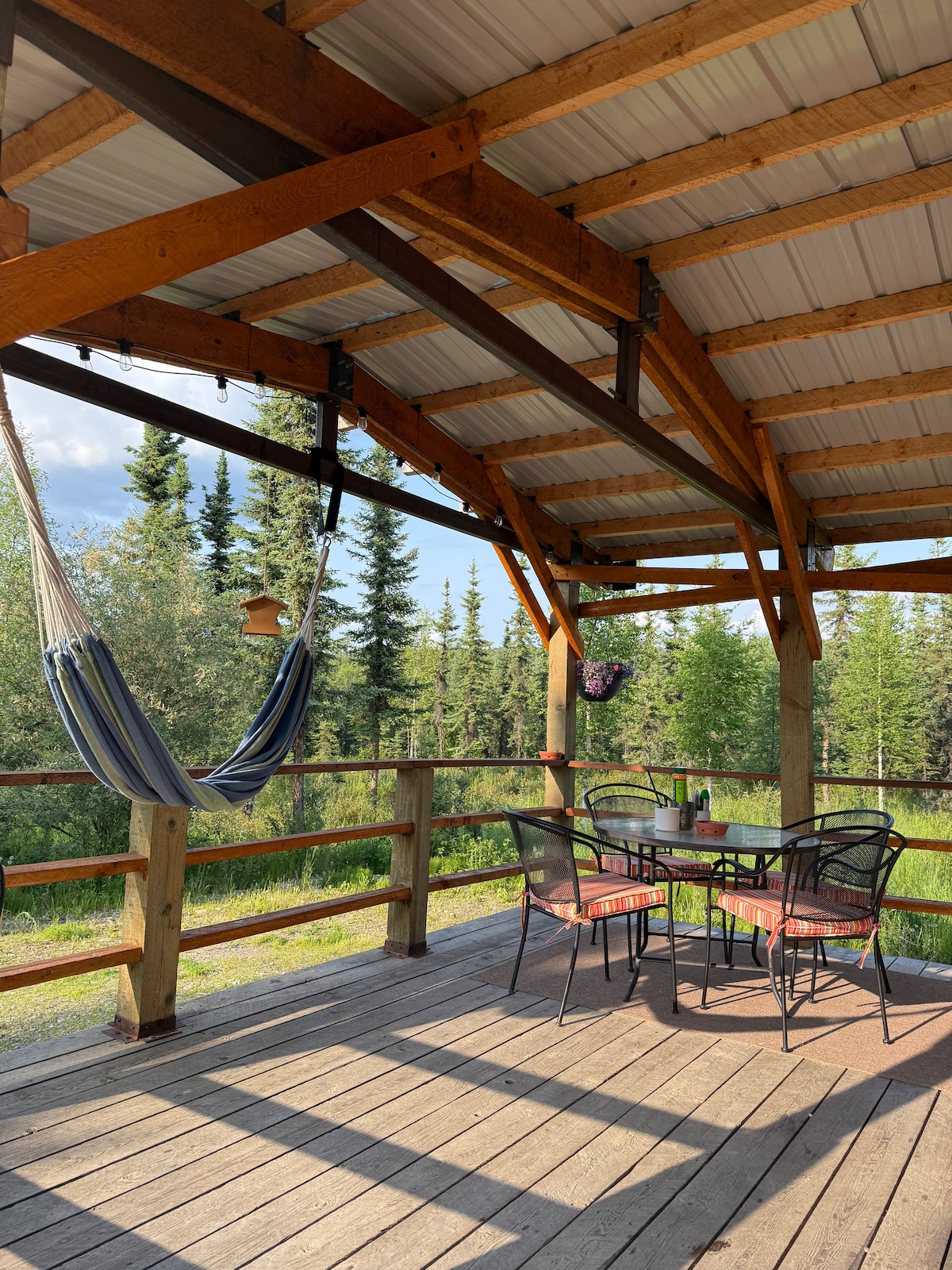 Jag tillbringade över två år med att leta efter det bästa stället att ha ett Airbnb i området, och detta var det vinnande stället! Det är mindre än 20 minuter från flygplatsen. Du är på en lugn, fridfull plats med över 40 hektar träd och djurliv runt omkring. Boendet ligger på Murphy Dome som är den bästa platsen att se ljuset och du kan enkelt se ljuset från detta bekväma semesterhus. Jakt, fiske, vandring... allt inom gångavstånd! Min bil är tillgänglig för uthyrning också om du behöver transport.