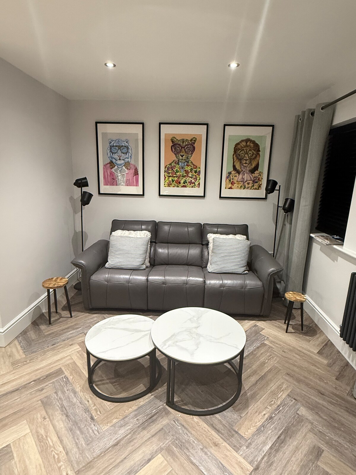 Njut av en elegant upplevelse på detta centralt belägna boende. Gäster kommer att ha enkel tillgång till barer, restauranger, Sale Tram Stop och allt som Sale har att erbjuda. Det är 3 minuters promenad till Sale Tram stopp för enkel tillgång till Old Trafford (10 minuter). Etihad (25 minuter), Manchester City Centre eller Altrincham. Du har hela lägenheten med en 50-tums Smart TV i loungen. 1 x dubbelsäng 1 x King S uppblåsbar säng eller hopfällbar enkelsäng för loungen (tillhandahålls på begäran baserat på gästnummer)