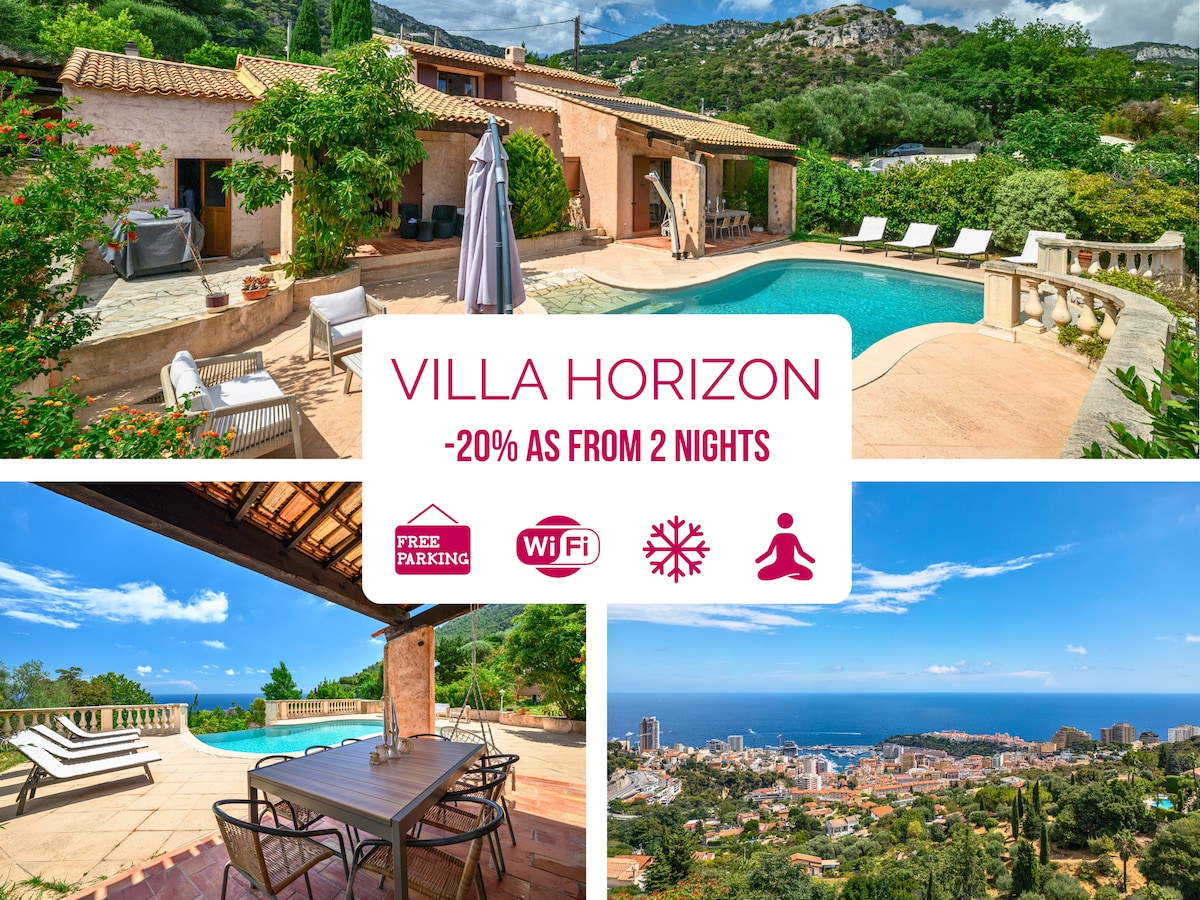 Villa pour 7 max , vue mer, piscine, proche Monaco