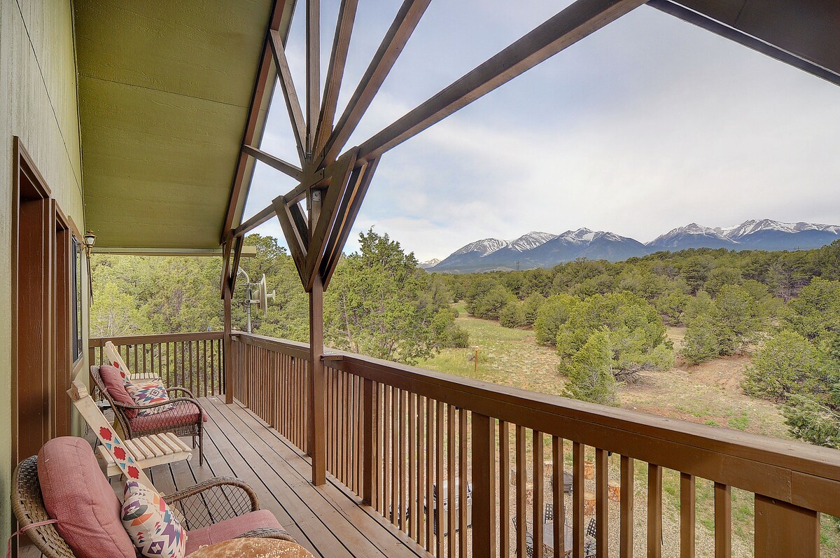 ★Närliggande Reservoirer ★Buena Vista ★Mt Princeton ★Dream Stream ✓Kort bilresa till fiske, vandring, cykling, varma källor, snöskor, ridning, längdskidåkning, bergsklättring, forsränning, off roading, ziplining, restauranger och shopping i världsklass ✓Bergsutsikt från den stora bakgården och balkongen på andra våningen ✓Grill + Eldstad ✓Smart-TV: Hulu, Netflix och Disney+ tillhandahålls ✓Mysig pelletskamin ✓Helt nya bekväma sängar: 1 king, 2 twin ✓Utrustat kök ✓Snabbt Wifi ✓Nyckellös entré ✓Garage