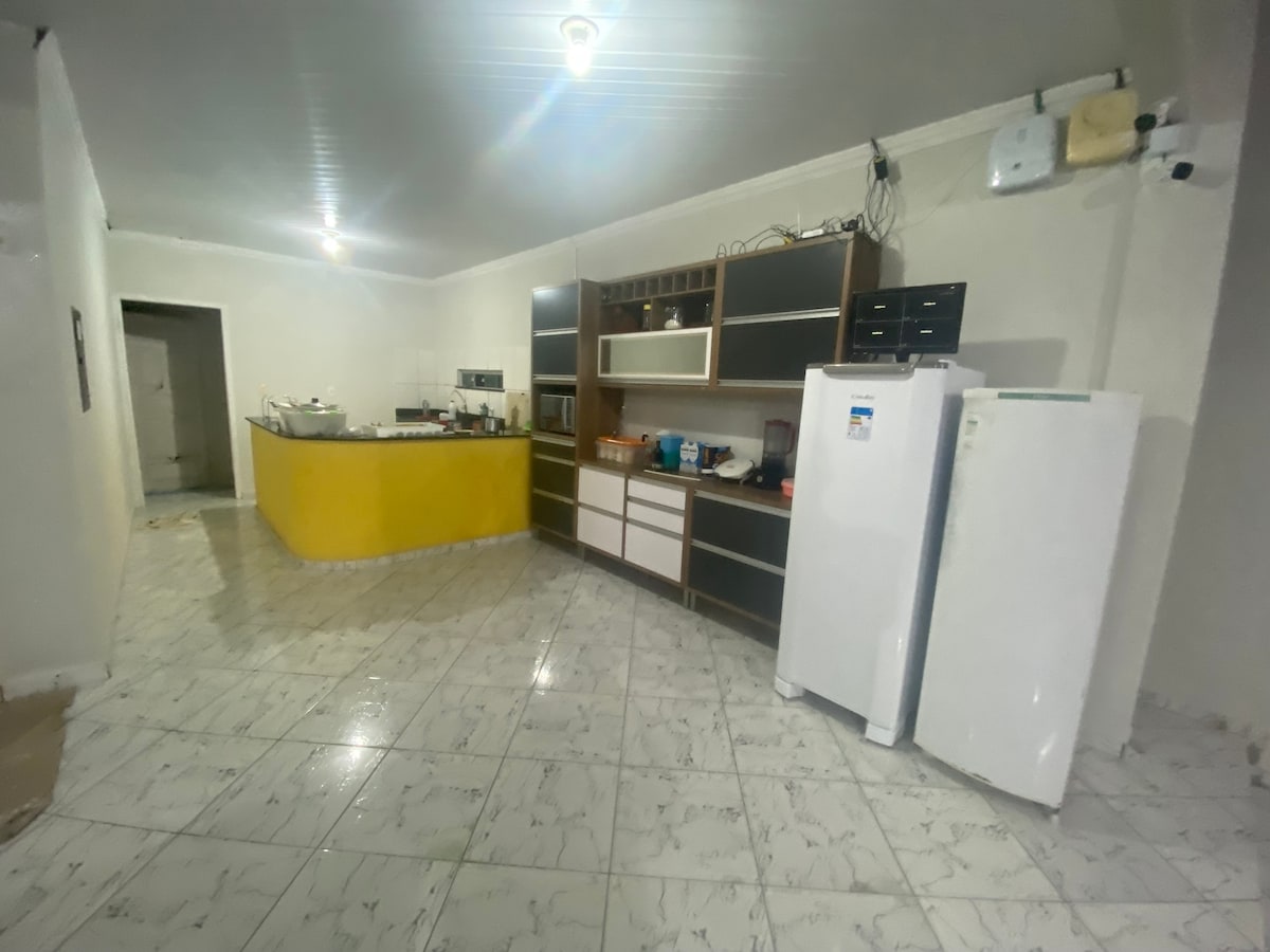 Hus i Salinópolis med pool och grill Den rymmer upp till 15 personer, 12 i sängar (dubbelsäng och våningssängar) och 3 i extra madrasser. Beläget 500 meter från Atalaia Beach och framför Allt bekvämlighet. Huset har 3 sviter, alla luftkonditionerade och 1 sovrum sviter, fullt utrustat kök (kylskåp, spis, skåp, porslin och kastruller), tvättstuga, garage för 4 bilar och gratis Wi-Fi. Perfekt för familjer och grupper som söker komfort, fritid och närhet till stranden.