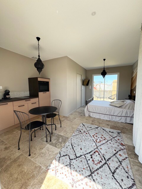 Njut av en trevlig vistelse i denna T1-lägenhet i anslutning till vårt hus. kommer du att ha en modern vistelse/ kök för att förbereda dina små rätter du också kan äta under gården för en utomhusmåltid. den exklusiva Rapido-soffan kommer att säkerställa komfort under dina nätter. ett stort badrum och en innergård kompletterar detta boende för att bättre välkomna dig. självincheckning, wifi, tekaffe, handdukar tillgängliga utan kostnad