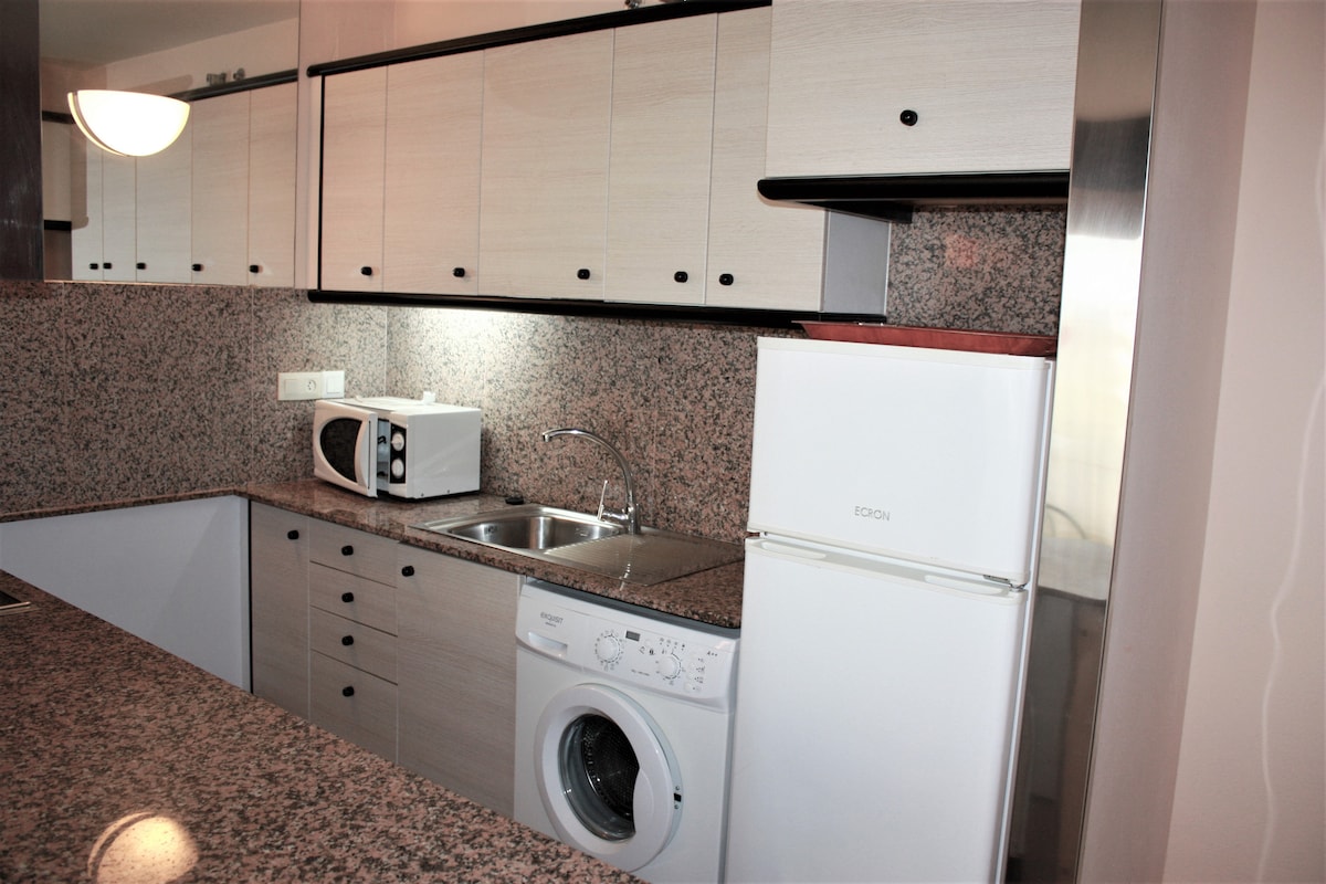 COSTA D'OR II-komplexet ligger några meter från stranden och omgiven av stormarknader och restauranger. Lägenheten är totalrenoverad. Det har ett sovrum med en dubbelsäng och ett annat med två enkelsängar. Det rymliga vardagsrummet har ett pentry (induktionshäll, diskmaskin, ugn och mikrovågsugn). Stort badrum med dusch och tvättmaskin. ÖVRIGT: Parkeringsplats Soffa säng Resesäng Utomhusduschar Hängmattor, paraply och paddlar.