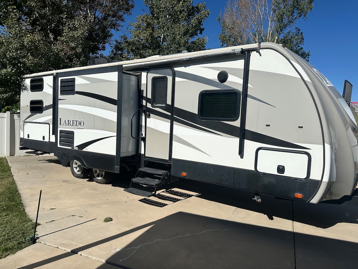 Adventure awaits you in this rustic getaway. Complete with two full bunk beds. Fold down table bed, pullout couch bed, and a queen master bed. The trailer has two slide outs and a kitchen island. Also it has an outside kitchen with an electric fridge and two burners.