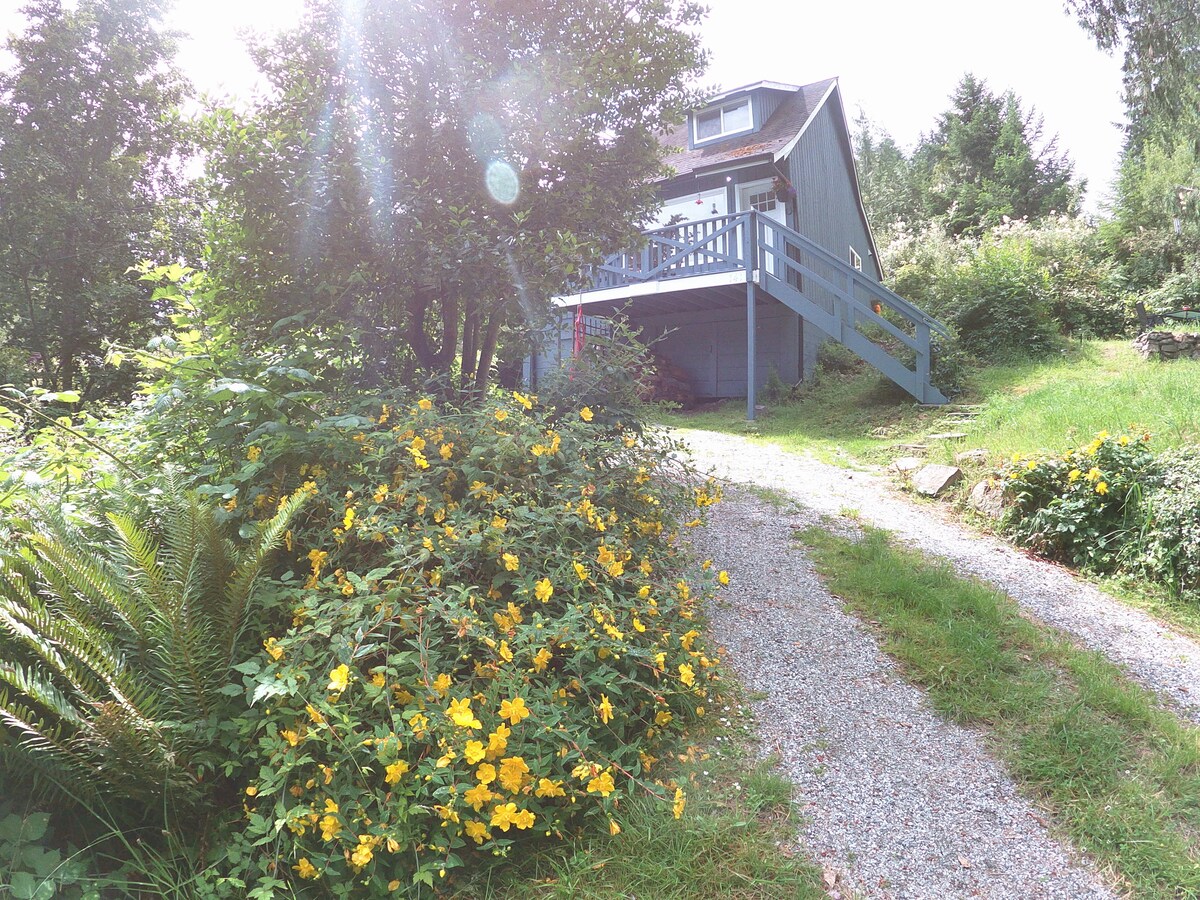 Kanalisera jakten på vila i detta unika jordhus. Den mysiga reträtten var handskulpterad med lokala och hållbara naturmaterial och har ett centralt vardagsrum med platta trappor som leder till vindsvåningen. Gäster har tillgång till hela stugan och omgivande egendom. Vi bor i grannhuset och ger dig gärna råd eller svarar på frågor som hjälper dig att få ut mesta möjliga av din vistelse. Grannskapet är ganska lantligt och mestadels jordbruk med flera gårdar och en liten privat vingård. Hemmet är en 10 minuters promenad från stranden och en 20 minuters promenad från en familj livsmedelsbutik och deli specialiserat på lokala ekologiska produkter. Mayne Island har en liten buss. Tiderna och rutterna är begränsade, särskilt på vintern. Den stannar vid uppfarten. Vi har också ett officiellt liftsystem med signerade bilstopp där du kan vänta på en åktur. Vanligtvis behöver man inte vänta länge. Vi erbjuder gärna upphämtning och avlämning vid färjebryggan som en artighet för att uppmuntra bilfria resenärer, på dagar när lokalbussen inte går. Tveka inte att kontakta oss i förväg om att du kommer utan egen transport, så ser vi till att antingen vi eller lokalbussen (som släpper av dig på vår uppfart) är där för att möta dig när din färja anländer. BC Ferries terminaler nära Victoria och Vancouver är lätta att nå via kollektivtrafik från sina respektive flygplatser och downtowns.