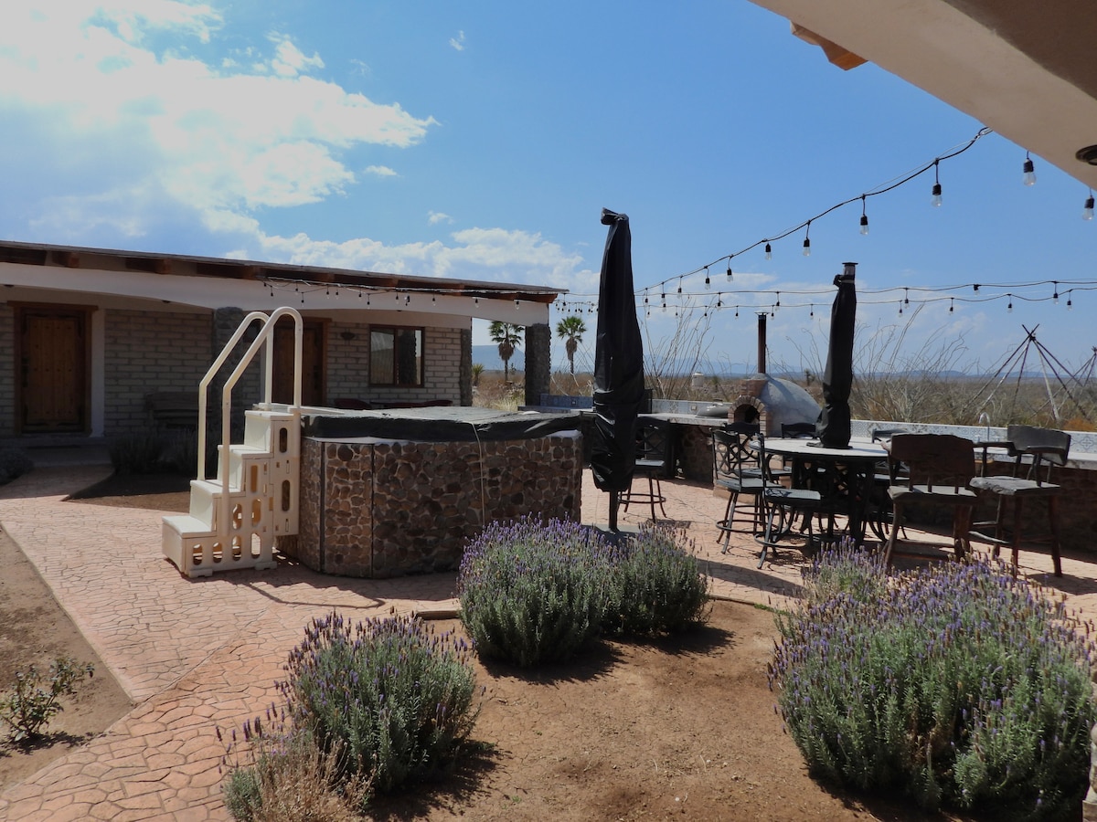 Villa Amonites es un espacio ubicado en los alrededores de General Cepeda, a menos de 1 hora de Saltillo y a 1 hora y media de Monterrey, ubicado dentro de un viñedo familiar rodeado de naturaleza, tranquilidad y vistas espectaculares. Diseñado para desconectar y reconectar con tus seres queridos. Disfruta de 4 amplias habitaciones con baño privado, área de asadores y jacuzzi, palapa con baños, cava privada y cocina equipada y vistas al viñedo.
