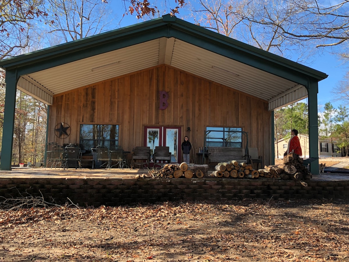 Koppla av bland tallarna och det lugna vattnet i Sam Rayburn. Njut av familjens kul på den rymliga gården som inkluderar en överdimensionerad eldstad, perfekt för mysiga nätter! Detta hus har alla bekvämligheter du behöver, inklusive utrymme att parkera din båt. Perfekt för familjer eller romantiska parhelger. Beläget bara en halv mil från marinan. Båtstartskort ingår. Guidade fisketurer finns tillgängliga med en känd guide för en extra kostnad.