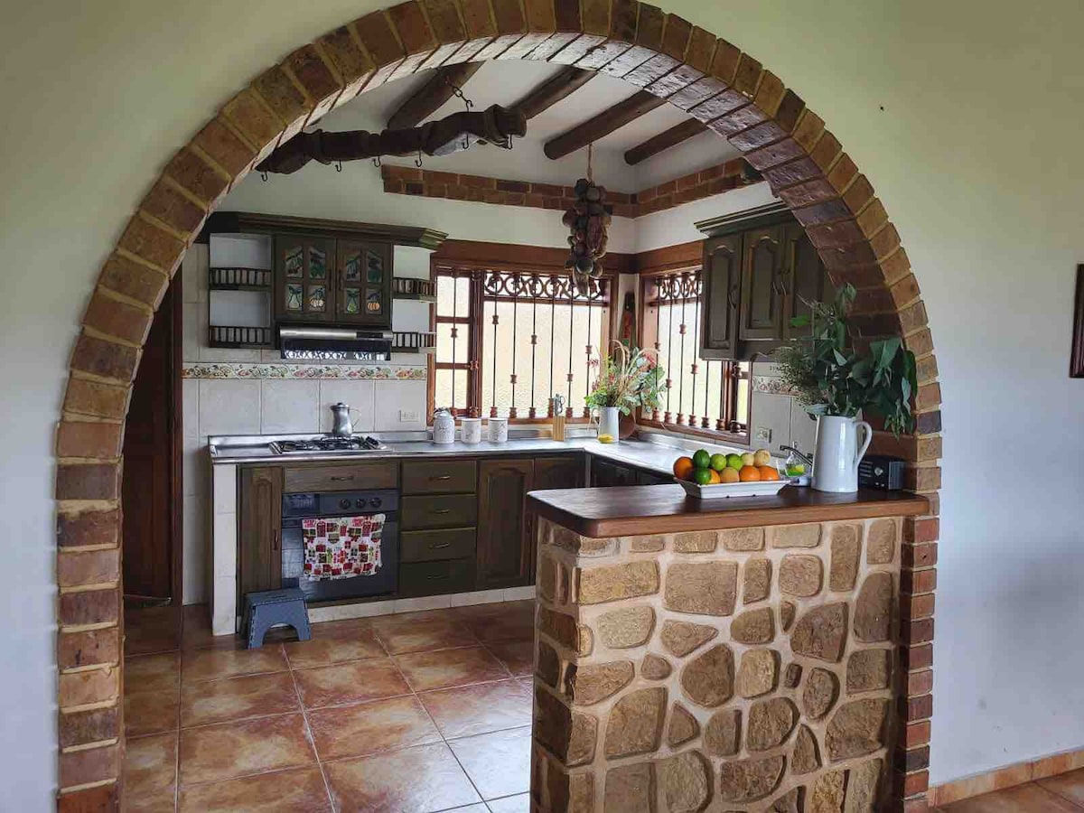 Hermosa casa campestre, a 5 min de Villa de Leyva totalmente equipada, lavadora , secadora , secador . Ideal para estadías largas, tres habitaciones con baño privado ,baño social ,sala, comedor ,cocina, tina en el jardín caliente(su uso genera costo adicional) wiffi, parqueadero privado (5) carros . Con todas las comodidades de un hotel 5 ⭐️⭐️⭐️⭐️⭐️ . Lugar ideal para trabajo remoto 🧑💻o vacaciones familiares. Terraza con vista a la montaña y a Villa de Leyva .