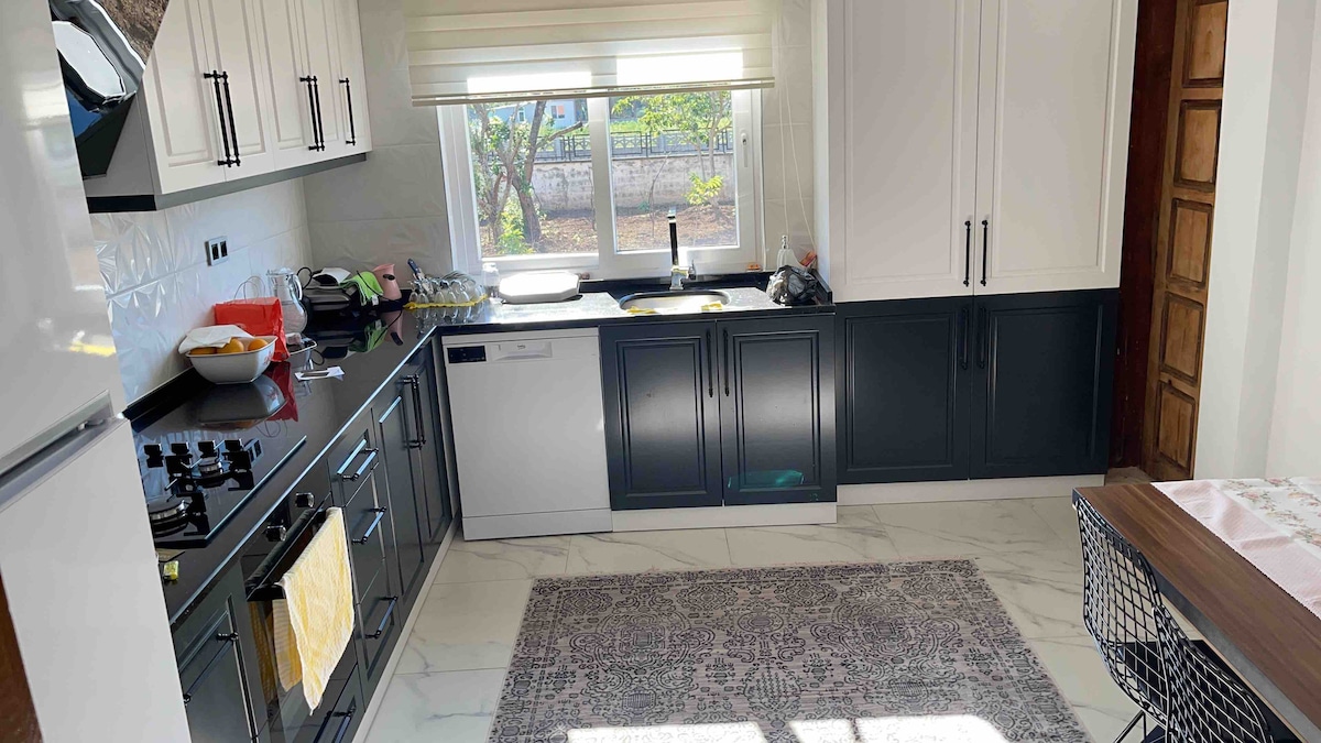 Vårt omsorgsfullt inredda hus i Samsuns mest anständiga stadsdel kommer att erbjuda dig ett rent och säkert boende. Det är 2 minuter med bil från stranden. Huset har en TV, kylskåp, tvättmaskin, elspis, te, kaffe, brödrost, samt te, kaffe, snabbkaffe, matolja, diskmaskin, tvättmedel, rena handdukar, sängkläder, schampo och duschgel, toalettpapper och allmänna rengöringsmedel. Den 25 m2 stora balkongen har utsikt över bergen, havet och staden. Detaljerad städning görs efter varje gäst. Den är idealisk för stora familjer och grupper av vänner.