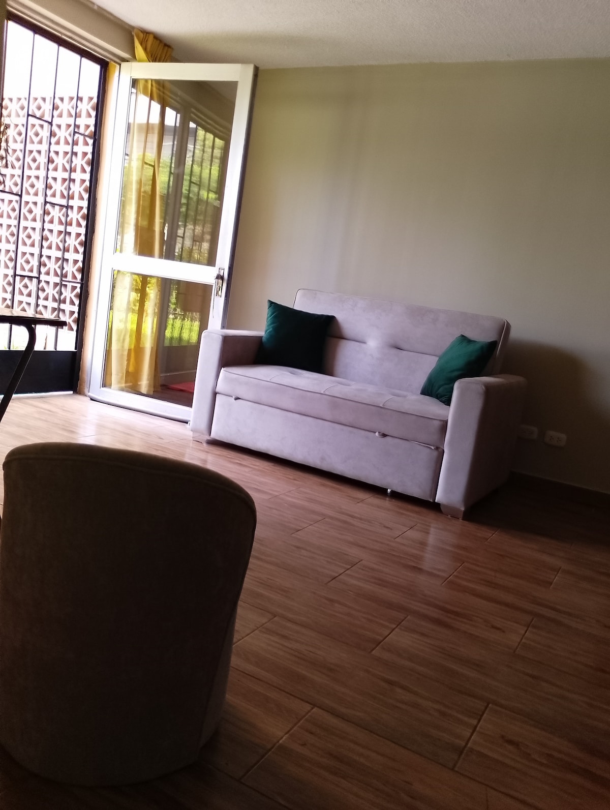 Disfruta de la sencillez de este alojamiento tranquilo y céntrico, en el corazón de San Borja a un paso de la estación del tren y buses a todo Lima, restaurantes, centros comerciales, tiendas, bancos y lindos parques. El monoambiente está en el 5to. Piso con una linda vista panorámica a la avenida San Borja Sur llena de vegetacion (el edificio no cuenta con ascensor), tiene una cama de 2 plz, escritorio , baño con agua caliente, cocina equipada. Estacionamiento gratuito y muy seguro en la calle.
