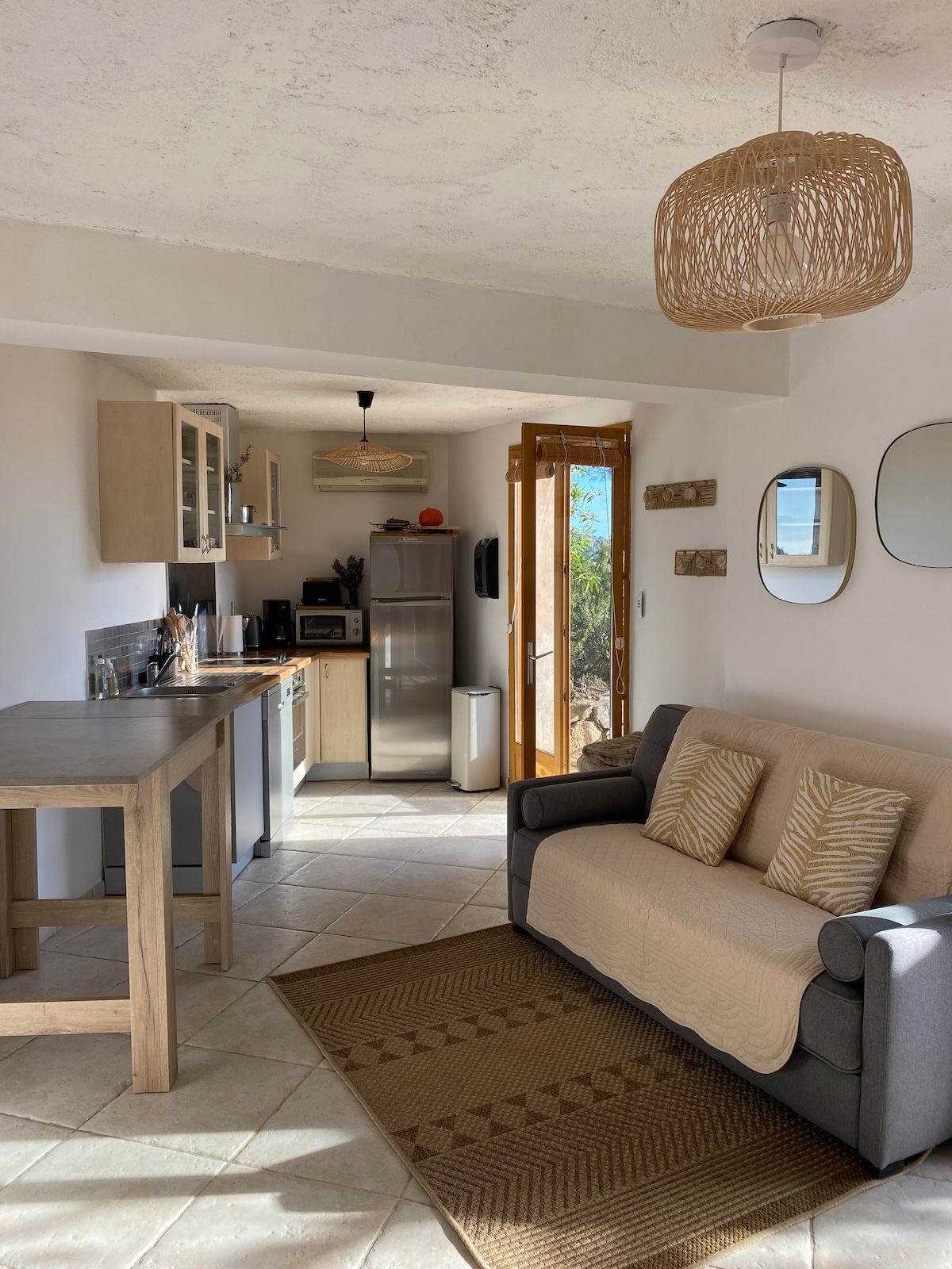 Villan, godkänd 2022 av Korsikas Territorial Collectivity, ligger bara 3 minuters promenad från stranden och byn med små butiker och restauranger. Det ligger i en stor medelhavspark, blommig, tyst och stängd, i skuggan av en tallskog. I San Ciprianu har du möjlighet att öva segling, jetski, dykning, ridning och njuta av en vacker plats, idealiskt beläget för att besöka södra Korsika. Var carrefull.... uthyrningen börjar på söndag!