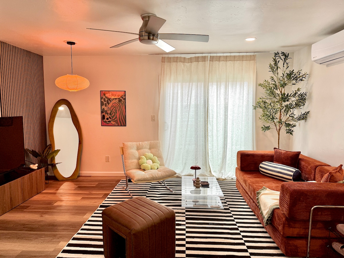 This meticulously renovated historical hotel suite, designed by Pininfarina, is located in Downtown San Diego’s vibrant Gaslamp Quarter, surrounded by restaurants and nightlife. It offers private, spacious accommodations for both business and leisure travelers, featuring a king bed, smart TV, central AC, and mini-fridge. Please note: an adjoining bar operates until midnight, and some noise is expected.