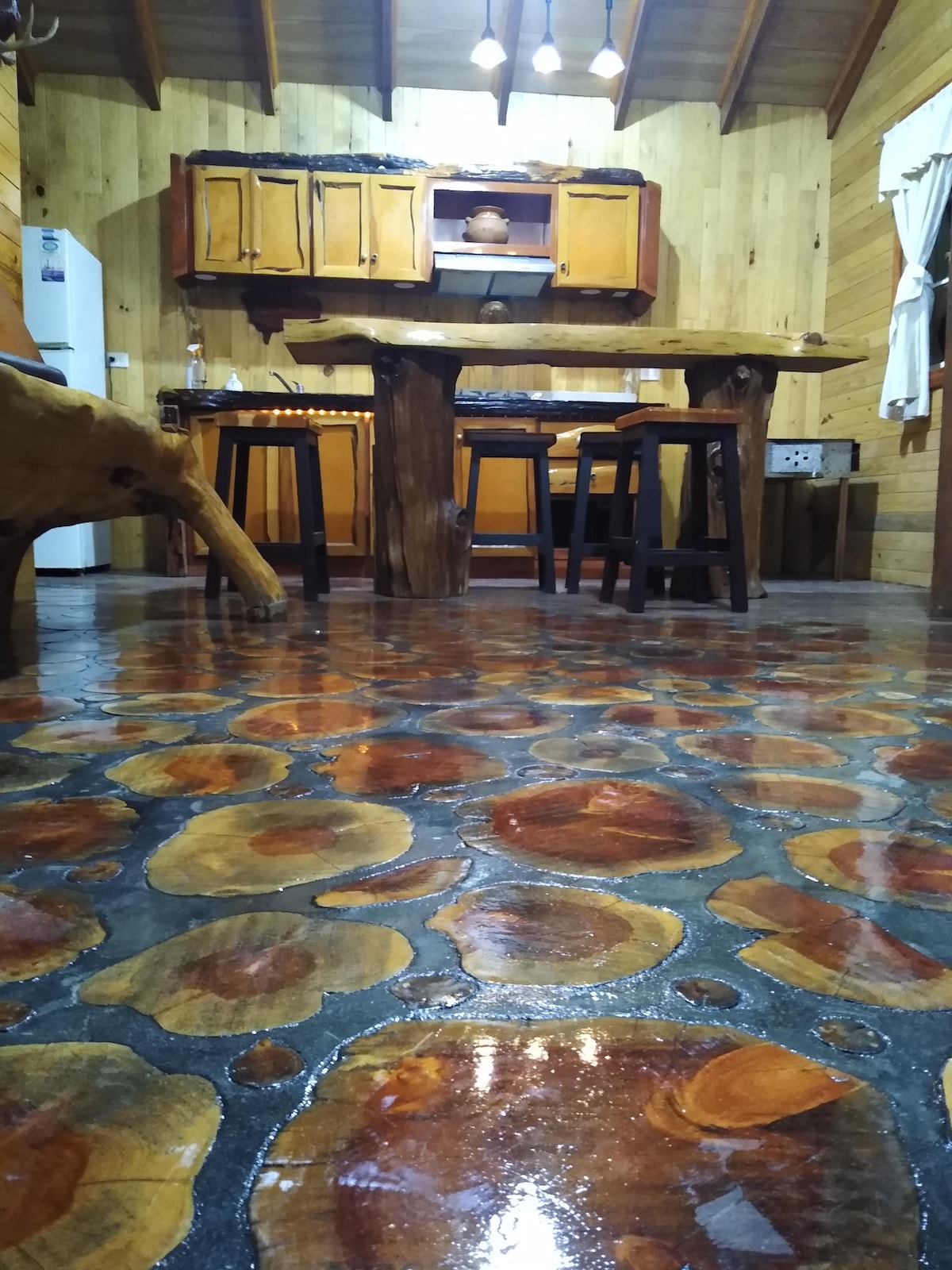 Denna stuga är en del av ett stugkomplex mitt i skogen. Vi försöker skapa ett ställe att koppla av från stadens rörelse. Den har en egen grill och ansluter till en stor lägereld för att bo i en grupp. Gemensamma utrymmen inkluderar grillar, pingisbord och stora grönområden. Vi har bordsspel som du kan fråga värdarna. 5 minuter från Tule vattenfall, där du kan observera storleken och storheten i det, samt vara en utmärkt fotoställe.