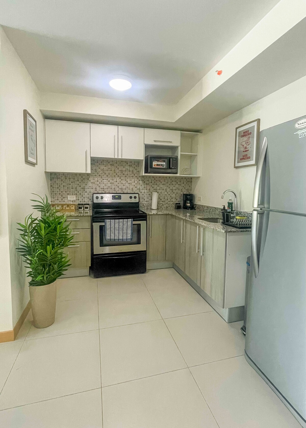 CR Stays välkomnar dig till denna fullt utrustade studio bara 4 miles från Juan Santamaría flygplats. Njut av fantastisk utsikt över Escazú-bergen, en kingsize-säng, en bäddsoffa, snabbt Wi-Fi och luftkonditionering – perfekt för 4 gäster. Byggnaden har ett gym, pool, grillterrass, privat biograf och mötesrum. Nära Plaza Real Cariaris butiker och restauranger, i ett affärscentrum. Säkerhet dygnet runt för en säker, elegant och bekväm vistelse.