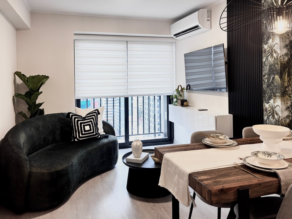 A refined designer loft with skyline views and a lush green balcony—created for guests who value calm, design, and effortless comfort. Two elegant suites and 2.5 designer baths, curated décor, and warm lighting create a boutique hotel feel. Enjoy a fully equipped kitchen, fast WiFi with backup, Smart TVs, washer-dryer, and SUV parking in a prime, walkable location steps from Kennedy Park, cafés, and the ocean.