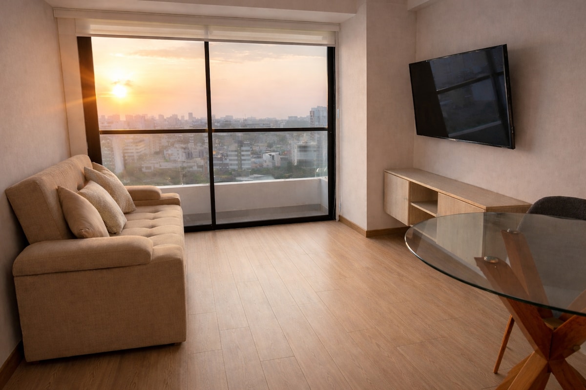 Välkommen till din drömplats i Miraflores, ett magiskt hörn av Lima som kommer att fängsla dina sinnen från första ögonblicket. Vi bjuder in dig att fördjupa dig i elegansen och charmen i denna unika lägenhet, utformad för att omfamna dig i en varm omfamning full av känslor. Läget är perfekt. På några steg hittar du parker, utsökta restauranger, stranden, barer, klubbar och mycket mer. Vi har Netflix och kabel-TV. Byggnaden har säkerhet dygnet runt.