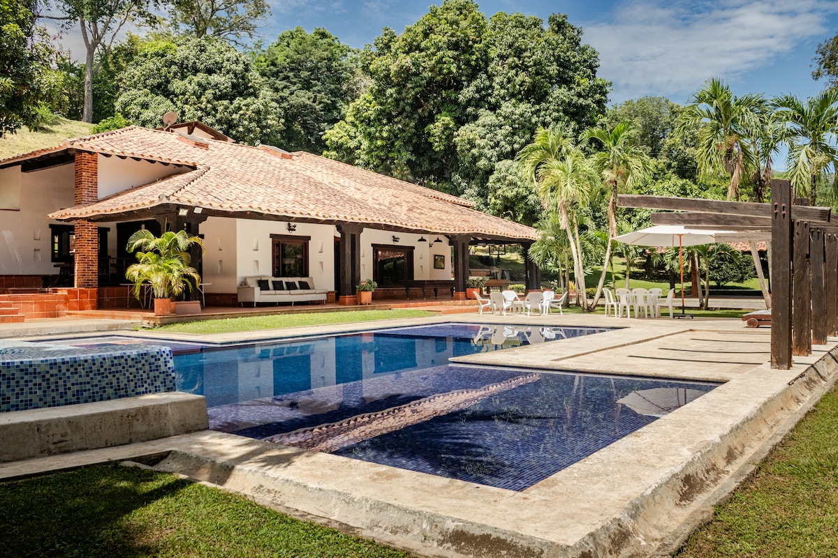 Du är i de bästa händerna med Superhost ✨ Lev en unik upplevelse av lyx och komfort i Santa Fe de Antioquia💎 Vår villa är perfekt för familjer, grupper av vänner som söker en vistelse i hotellstil 🏨 Vi erbjuder : 📶 Wifi 🍽️ Fullt utrustat kök 💧Varmvatten 🏊‍♀️ Simbassäng 🍖 Grill. TV-utrymme 🎬 och fonda bar 🛏️ Rymliga rum med oklanderlig design 👨‍🍳 Personal under tillgänglighet 🌳 Natur ❄️ Luftkonditionering 🚴‍♀️Cyklar 🕴️ Butler