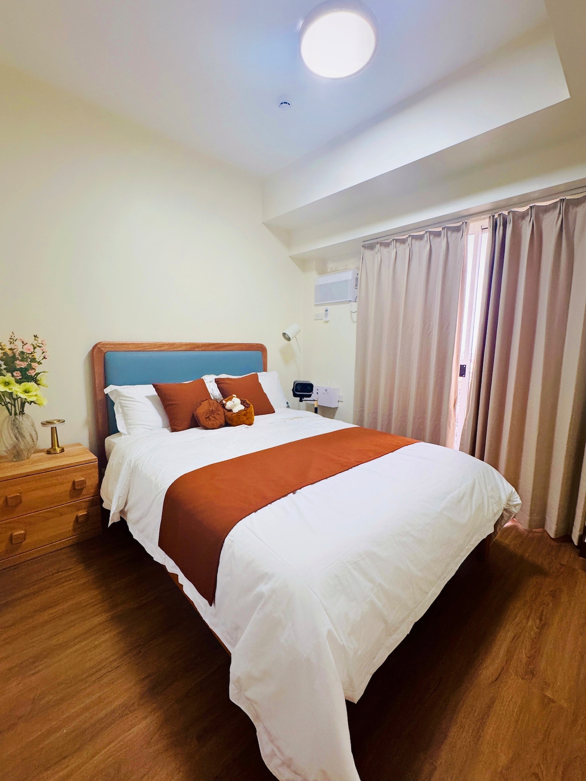 Ljust och rent sovrum i modern byggnad tillgängligt för kortare och längre vistelser. Perfekt för semesterfirare och affärsfolk mitt i Uptown BGC. Det erbjuder 350 Mbps snabbt Internet, Netflix och Disney-kanaler Läge: Det är tvärs över Mitsukoshi köpcentrum 4 minuters promenad till Uptown köpcentret 12 minuters promenad från Bonifacio High Street 21 minuters bilväg till NAIA T3 5 minuters promenad till Grand Hyatt hotel 12 minuters bilresa till Glorietta köpcentrum Detta är ett rökfritt boende.