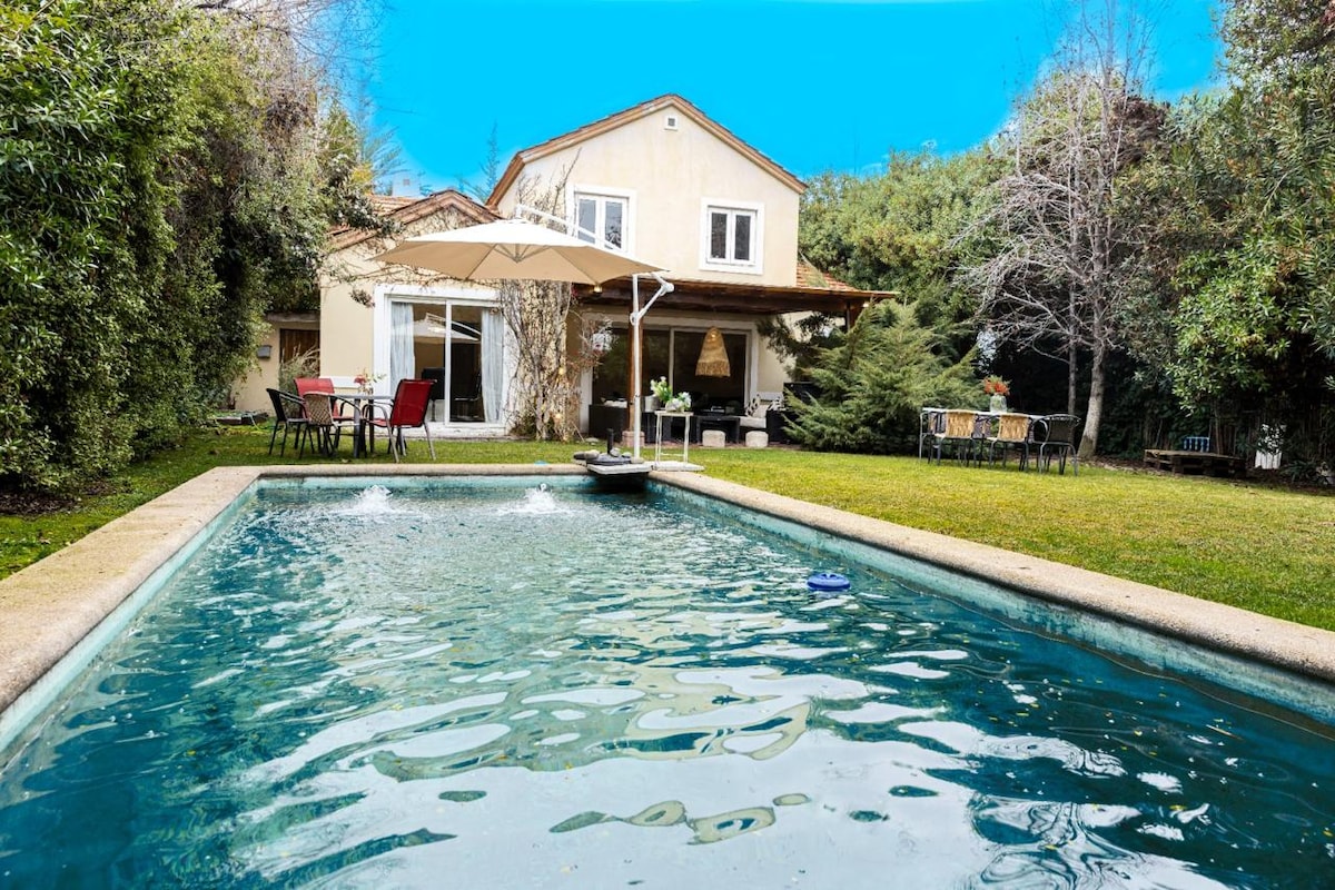 Spektakulärt hus på norra stranden av Aculeo-lagunen. Bara 1 timme från Santiago och mitt i en skog av inhemska träd, stengångar och en vacker trädgård med en pool är detta underbara hus med modern arkitektur. Här kan du koppla av med den bästa utsikten över lagunen, naturens återställande tystnad eller helt enkelt njuta av en konversation runt elden. SE HUSREGLERNA INNAN DU HYR!