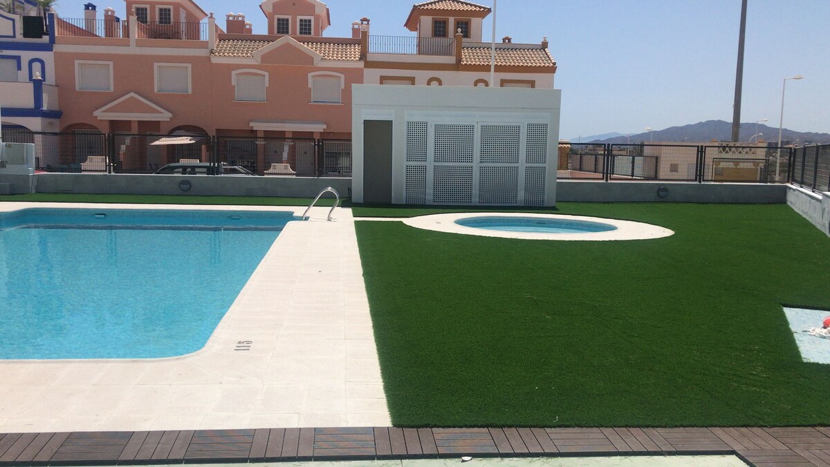 Söderläge & mysigt fritidshus med rymlig terrass, flera pooler och nära stranden ⛱️ ✔️100% egen terrass i söderläge ✔️lugnt läge på bottenvåningen (perfekt med barn) ✔️10 minuters promenad till stranden ✔️8 minuters promenad till stormarknaden, gymmet och restaurangerna ✔️superhöghastighets WIFI ✔️smart-TV (Netflix, Youtube...) ✔️underjordisk parkeringsplats ingår ✔️inhägnat grannskap Upptäck det idylliska San Juan de los Terreros med sina dussintals vackra dolda vikar och stränder 🏖️