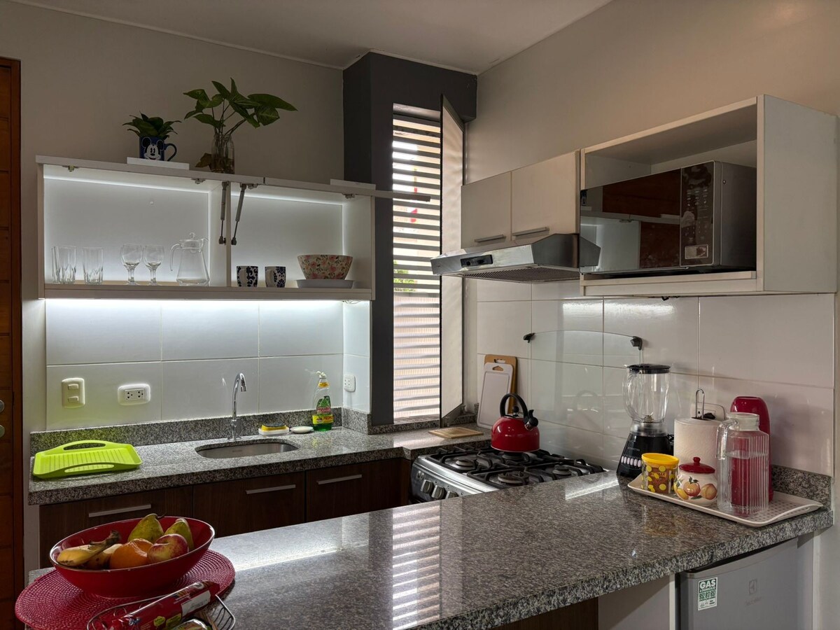 Njut av denna mysiga nordiska mini-lägenhet med luftkonditionering för sommaren så att din vistelse blir bekväm. Dessutom ligger den 10 minuter från Lima Perus internationella flygplats, 5 minuters promenad från köpcentret Mall Plaza Bellavista, där det finns restauranger, banker, växlingskontor, biograf, butiker, stormarknad, etc. Den ligger också nära San Marcos och Del Callao universitet, djurparken, Callao idrottsanläggning, kliniker och andra turistattraktioner.