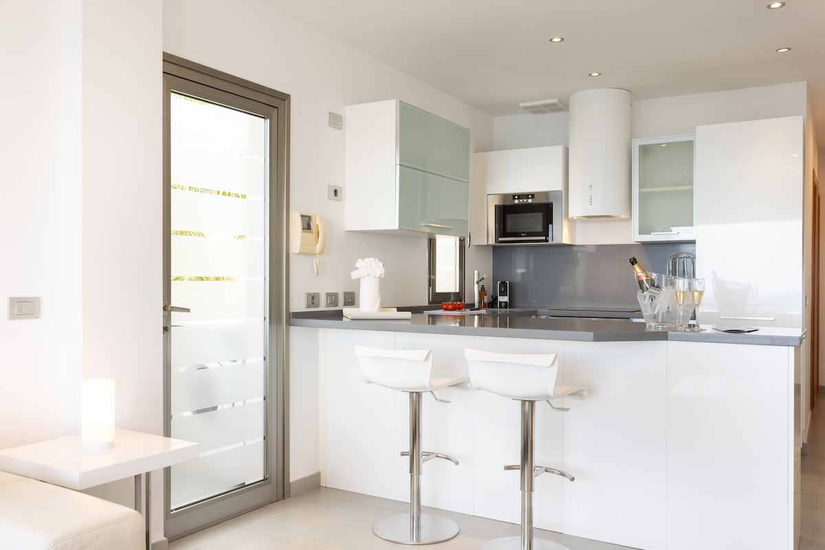 Boho-lägenhet vid havet med panoramautsikt över bukten