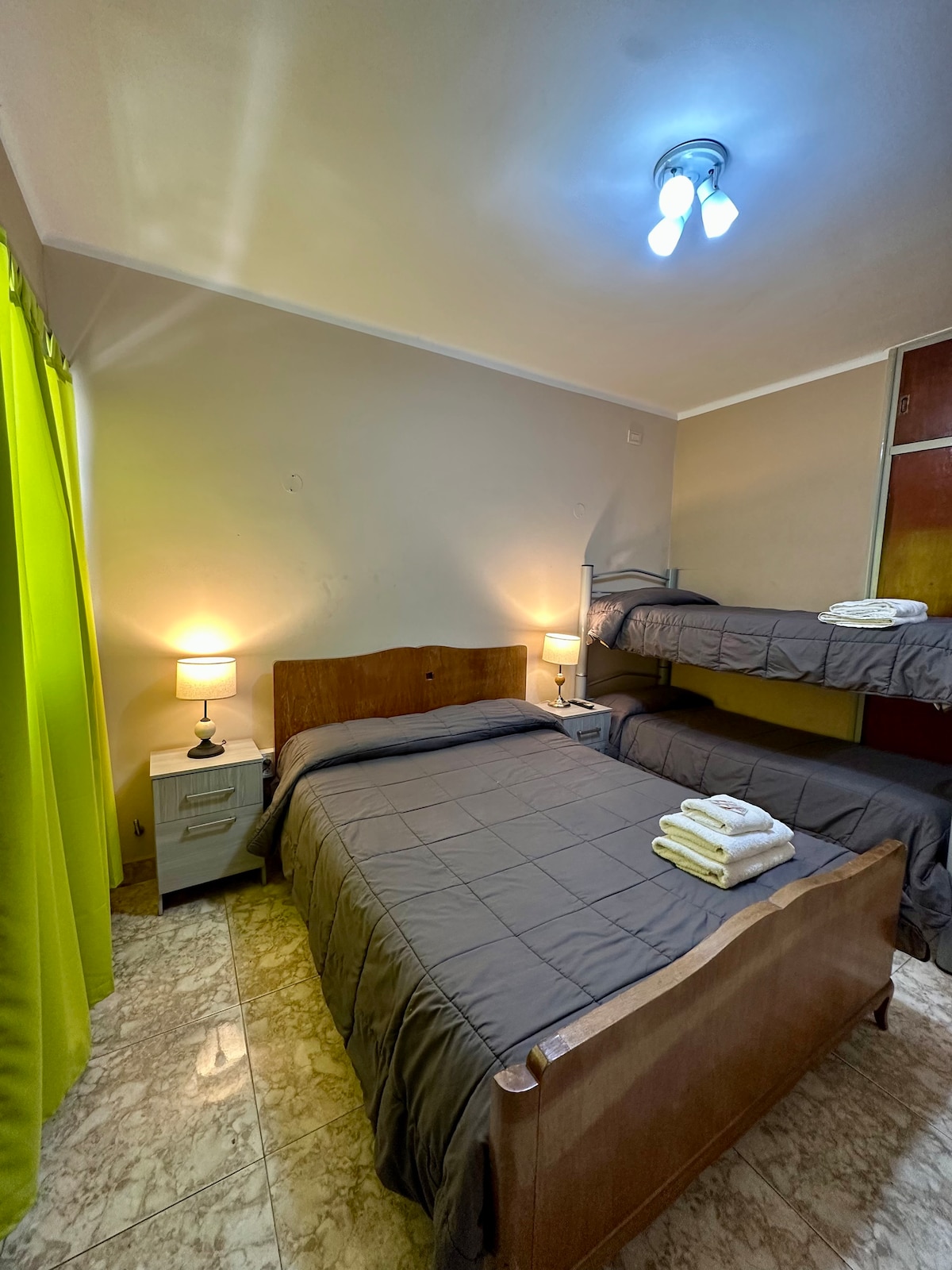 1 AVDELNING MED 2 RUM. FÖR 8 PERSONER OCH 1 ENKELRUM FÖR 4 10 MIN FRÅN HUVUDTORGET, ETT HALVT KVARTER FRÅN EN VIKTIG STORMARKNAD MED MAT UTEPLATS, APOTEK , BANKOMAT. VI ÄR 200 METER FRÅN DET TRADITIONELLA "FACUNDO QUIROGA"-GRANNSKAPET; ÖSTERUT 100 METER FRÅN EN DIREKT AVENIDA I CENTRUM OCH UTOMHUS SPORTGÅNG. TILLGÅNG ÄR GANSKA SNABB FRÅN RUTTER 38 OCH 5 SOM GÅR IN I NORR OCH SÖDER OM LANDET .