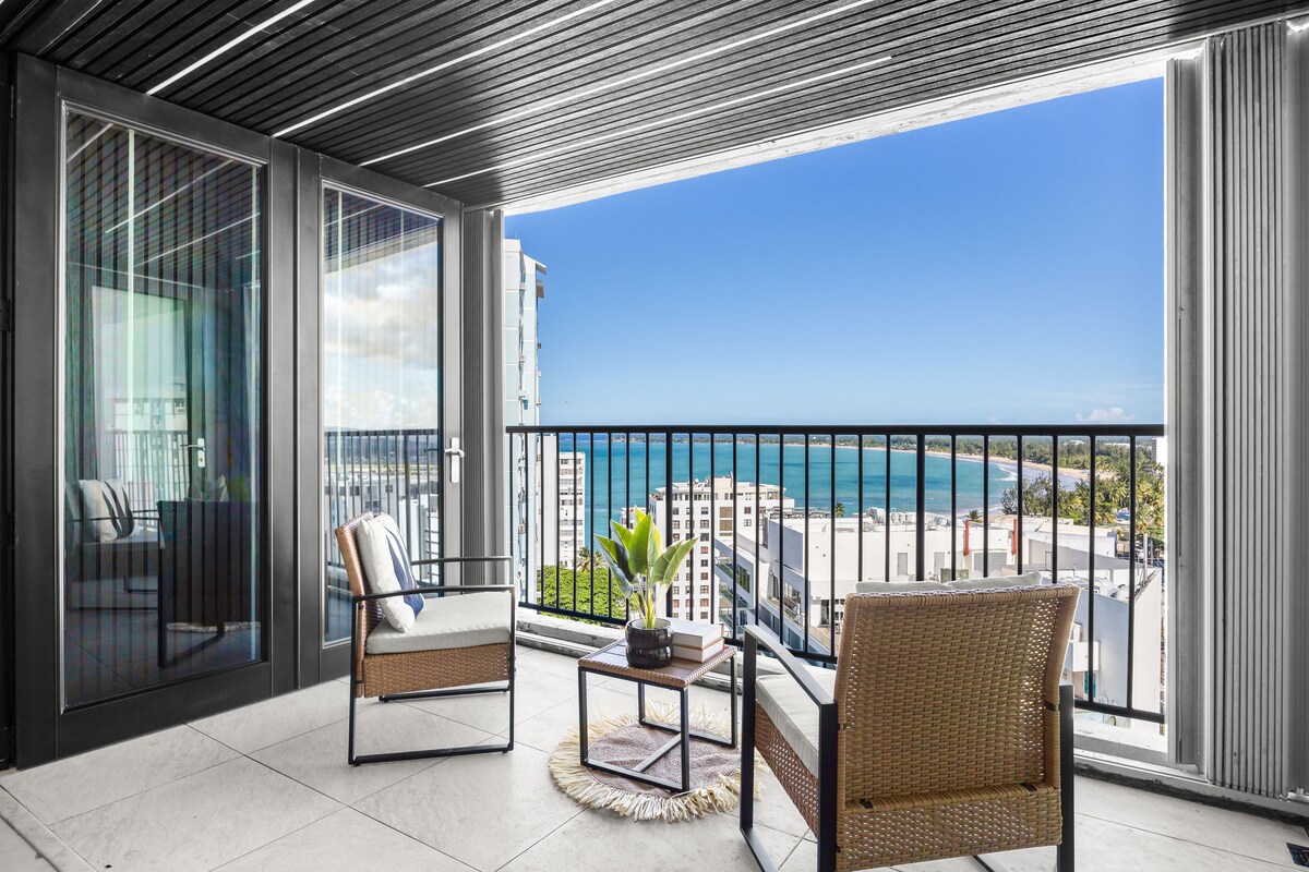 Denna lyxiga enhet ligger i en modern höghusbyggnad i ett uppåtgående område på ön Old San Juan bara en mil från den gamla spanska staden och nära Condado. Läget är perfekt för att komma åt den berömda stranden El Escambron (bara 1 kvarter bort!) mycket populär bland surfare. Det är en nyrenoverad pärla av en lägenhet i loftliknande stil med exponerade betongtak och balkar med fönster från golv till tak i en hörnenhet med gott om solljus hela dagen.