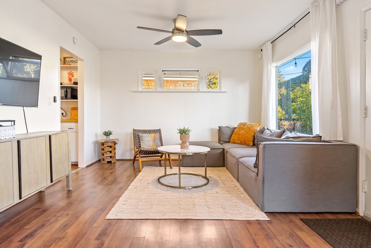 Efter lite tid utanför Airbnb är The Cottage tillbaka och bättre än någonsin våren 2025! Det perfekta stoppet för ditt äventyr på Central Coast! Smakfullt inredd och välfylld, stugan är perfekt för en resa till Paso Robles vinlandskap, stranden, San Luis Obispo, vandringsturer eller den berömda HWY 1! Stugan ligger på en vacker plats i nedre änden av vår tomt under en mogen och majestätisk ekskog intill en vacker vit lada med blinkande bistrolampor ovanför.