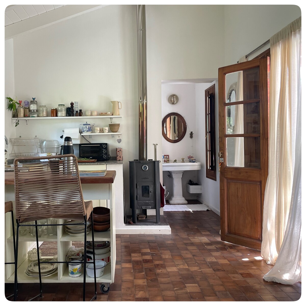 Yellow House, boutiquehus 120m2 ⭐️ Exceptionellt hus och inredning, med originella detaljer. Parkettgolv, tegeltak och stora bjälkar, samt en gammal öppen spis gör det stora vardagsrummet till en unik plats. Master-svit med stort fönster mot trädgården, kingsize-säng och komplett badrum. Andra rummet med 3 enkelsängar och ett badrum i samma stil. Skrivbord med stor bänkskiva för arbete och soffa som fungerar som en 5:e säng. En trevlig trädgård och lila magnolier omger altanen och grillen, för exklusiv användning, liksom garaget.