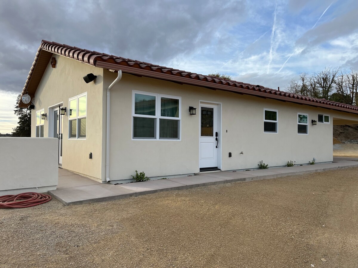 Vår studiogästsvit ligger ovanpå en kulle i den lantliga delen av Paso Robles på 2 hektar och mycket nära alla Hwy 46 EAST bästa vingårdar. 15 minuter västerut kommer du till centrum för fantastiska restauranger, vinprovning och Paso Downtown Square. Nära Sensorio ljusshow & Vina Robles amfiteater. Bara 45 minuter från stränderna (Cambria, Cayucos, Morro Bay, Avila och San Simeon (hem för Hearst Castle). Kom och se de gigantiska elefanttätningarna på stranden nära San Simeon eller havsutterna i Morro Bay.