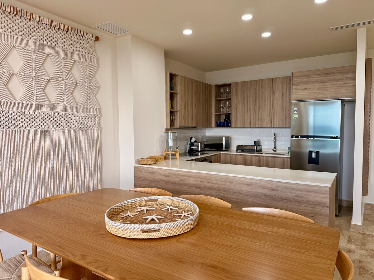 Upplev lyx och komfort i hjärtat av Cozumel Koppla av och varva ner i denna eleganta lägenhet med 2 sovrum och 2 badrum, perfekt för 4 gäster. Detta exklusiva utrymme ligger i en helt ny (2025) modern byggnad och erbjuder en oöverträffad upplevelse med bekvämligheter i toppklass och en unik kustkänsla. ✔ Huvudsovrum med en dubbelsäng ✔ 2 kompletta badrum med duschar ✔ Fullt utrustat kök ✔ 2 balkonger med hisnande utsikt över solnedgången i Cozumel ✔ Tvätttmaskin & Torktumlare